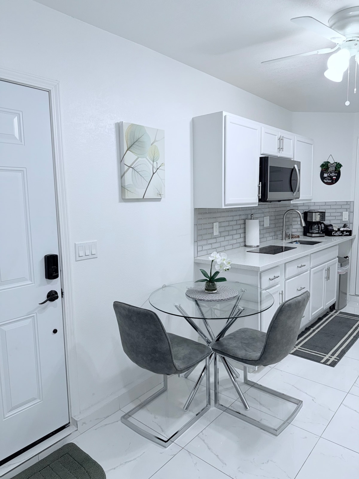 Estudio encantador y renovado . Acceso independiente, barrio tranquilo, próximo a la autopista 95. Cuenta con todas las comodidades lejos de casa. Smart TV, lavadora y secadora, tabla de planchar y plancha. Netflix y otras aplicaciones de streaming. Cocina con todo lo necesario para su estancia agradable más cafetera Secador de pelo. Cuenta con un espacio para trabajar,parqueo Gratis ! Justo en el drive way Y también cuenta con agua filtrada ! Además de una tranquilidad especial para descansar