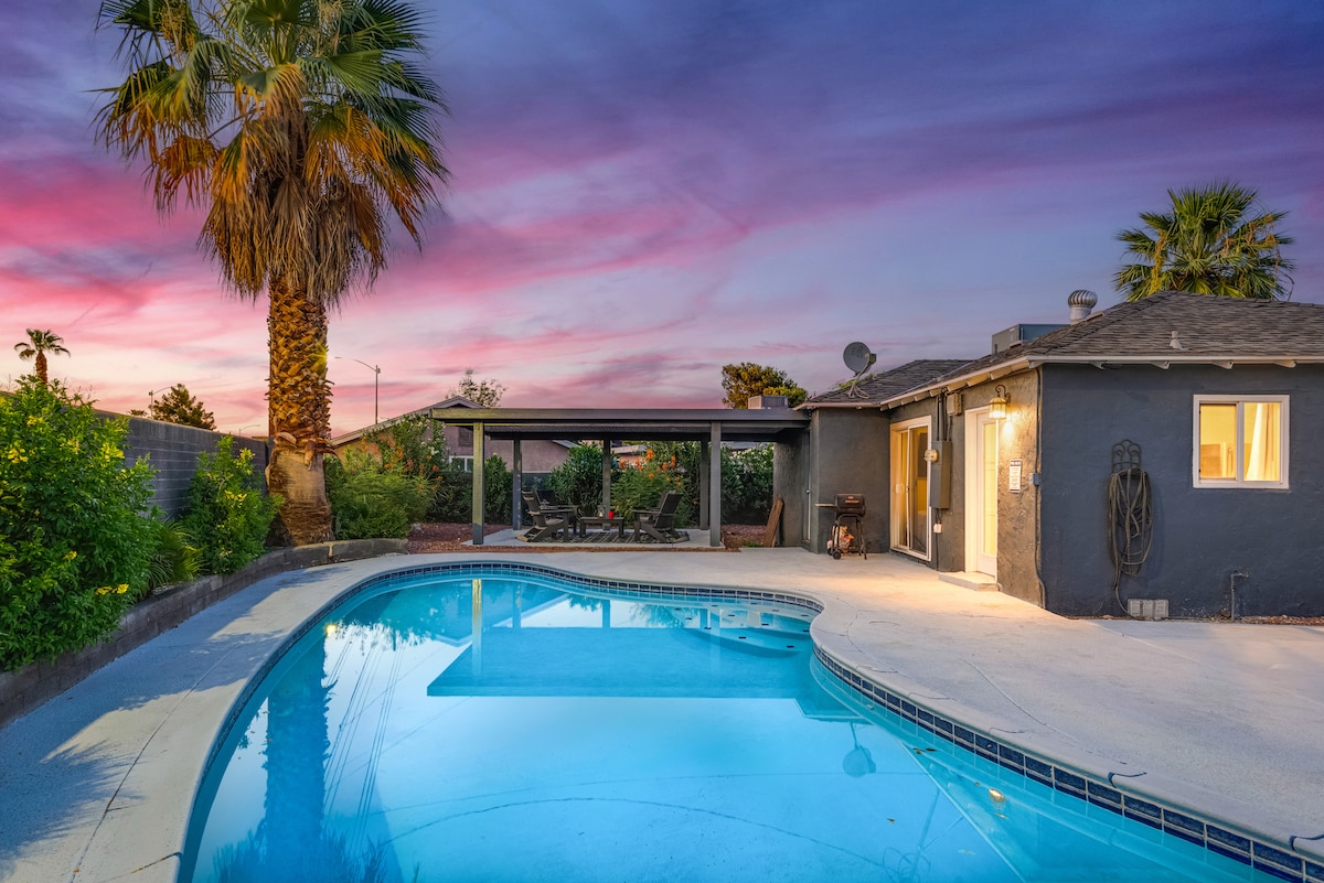 世纪中叶风格房源,靠近拉斯维加斯大道/市中心,带加热泳池