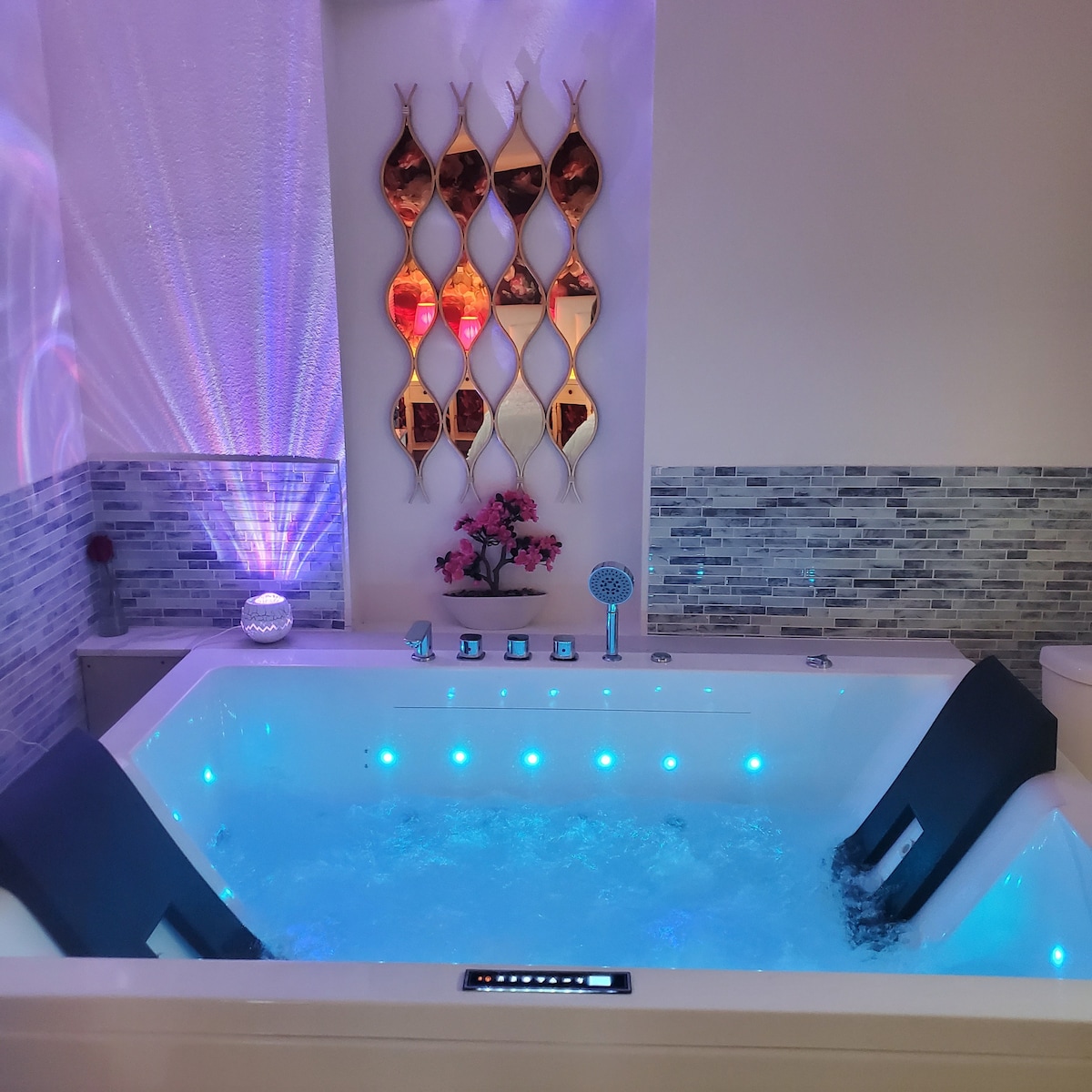 舒适的私人套房:床、浴室、水疗、泳池、可供4人入住