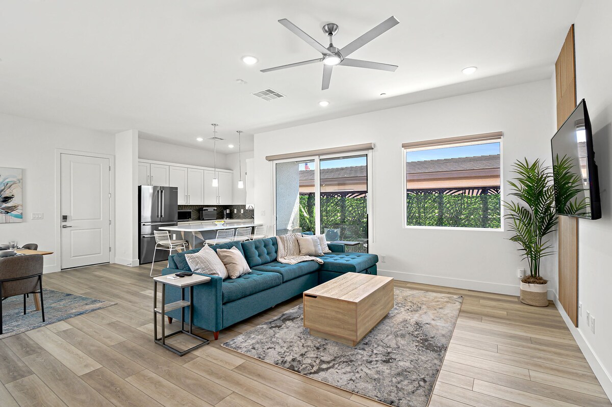 Unwind in the stylish 3 bedrooms, 2 bathrooms, and 3 TVs, and a separate office room, only 15 minutes from the Las Vegas Strip and 15 minutes from Las Vegas International Airport. Enjoy an easy adventure through Las Vegas from this prime location. Once you are ready to relax, retreat to the comfy home. ✔ Fully Equipped Kitchen ✔ Comfortable 3 Bedrooms w/ 3 Queen Beds ✔ Open Concept Living Area with gas fireplace on the first floor ✔ Separate Office Room ✔ High-Speed Wi-Fi ✔ Free Parking