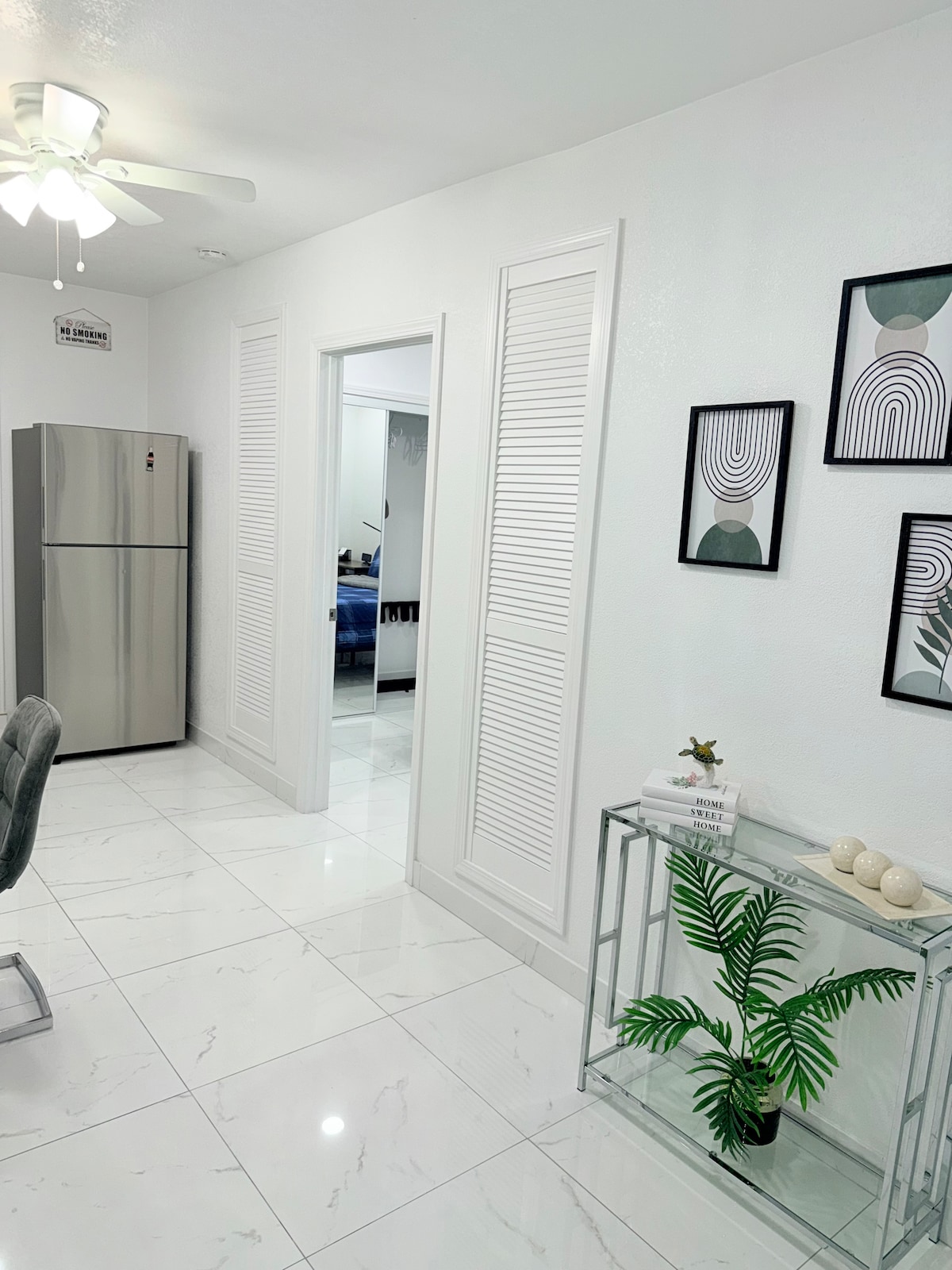 Estudio encantador y renovado . Acceso independiente, barrio tranquilo, próximo a la autopista 95. Cuenta con todas las comodidades lejos de casa. Smart TV, lavadora y secadora, tabla de planchar y plancha. Netflix y otras aplicaciones de streaming. Cocina con todo lo necesario para su estancia agradable más cafetera Secador de pelo. Cuenta con un espacio para trabajar,parqueo Gratis ! Justo en el drive way Y también cuenta con agua filtrada ! Además de una tranquilidad especial para descansar