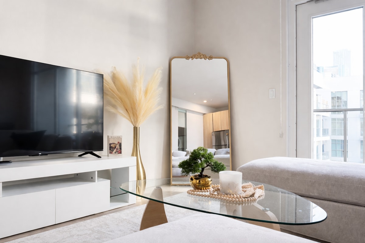 The Blk & Wht Suite is your ultimate stay where style meets luxury -- in the best part of DTLA! This amenity-rich 2-bedroom apartment is centrally located within walking distance from LA's best shopping, dining, and art destinations. Premium amenities in the suite and building are welcomed to be enjoyed by guests. This modern suite is meticulously cleaned with the highest standards for your peace of mind. Your comfort and luxury experience is top priority while staying at The Blk & Wht Suite.
