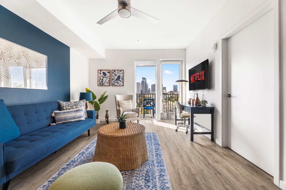 市中心附近的舒适1卧公寓,带泳池、热水浴缸和健身房