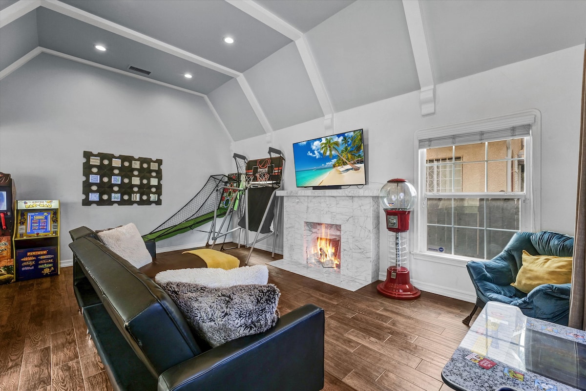 Welcome to your SoCal vacation home where there is something to do for everyone! This property boasts entertainment with lots of activities and games whether with friends or family. From all the arcade games to the relaxing infrared sauna there’s definitely something to host everyone in your group. Centrally located in Los Angeles, LAX, DTLA, sports stadiums, beaches, and Hollywood are all within 20 minutes. With all the top appliances and updates made everyone’s guaranteed to love their stay!