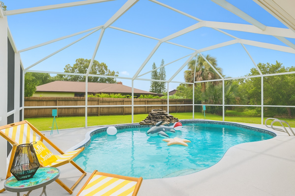 温馨的家庭宝石:泳池和游戏室,距离海滩11分钟