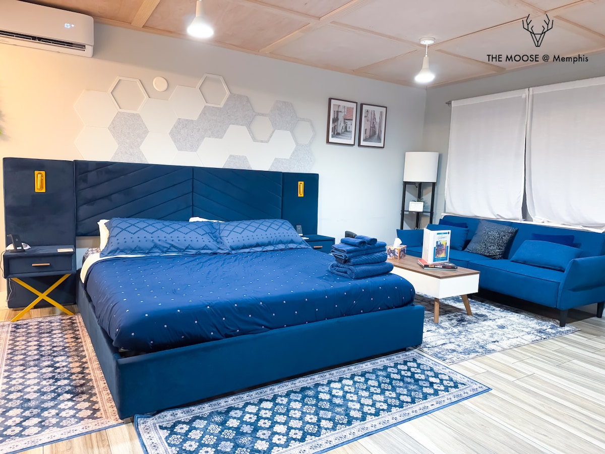 Immerse yourself in a picturesque oasis at the heart of downtown Memphis's Victorian Village. Experience an enchanting stay in a newly renovated king studio with modern decor, positioned in front of century-old villas. Revel in captivating views, a distinctive open layout, and insta-worthy decor. Enjoy a fully stocked kitchen, complete bathroom with a bathtub, and well-lit vanity. With central proximity to key attractions, free gated parking, and WiFi, your stay promises convenience and charm.