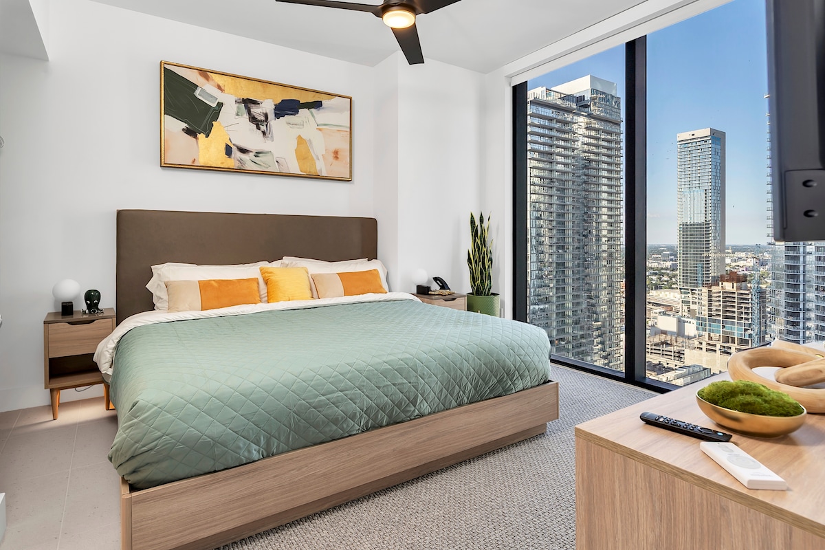 Welcome to a brand-new luxury escape at he heart of Downtown Miami! This modern space features a fully equipped kitchen and a comfortable bedroom with king bed. One of the highlights is the private balcony, which offers stunning views of the city and a perfect place to relax. Located in a lively neighborhood, you'll have easy access to local cafes, restaurants and stores. Off-site parking - $20 USD (subject to reservation and availability) Daily destination fee $35 USD + Tax (per reservation)