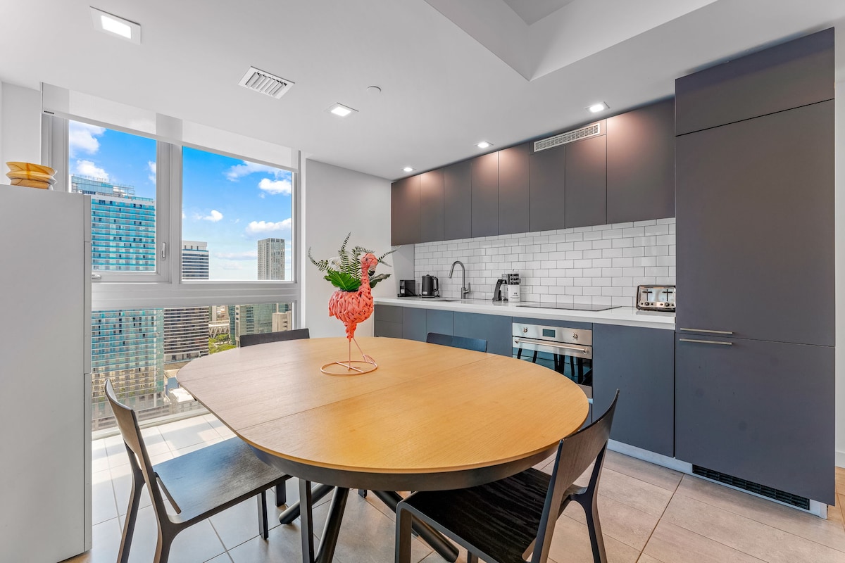 Stylish City Oasis in Downtown-Brickell Miami. Experience the vibrant energy of Miami from our stunning 30th + floor apartment, boasting breathtaking city views! Nestled in the heart of downtown, you’ll find yourself just a short walk away from the picturesque Biscayne Bay, the trendy Brickell area, Kaseya C. and the bustling Central Business District. Our apartment features beautiful, modern furnishings and top-notch amenities, including a refreshing pool, fully equipped gym and workstations.