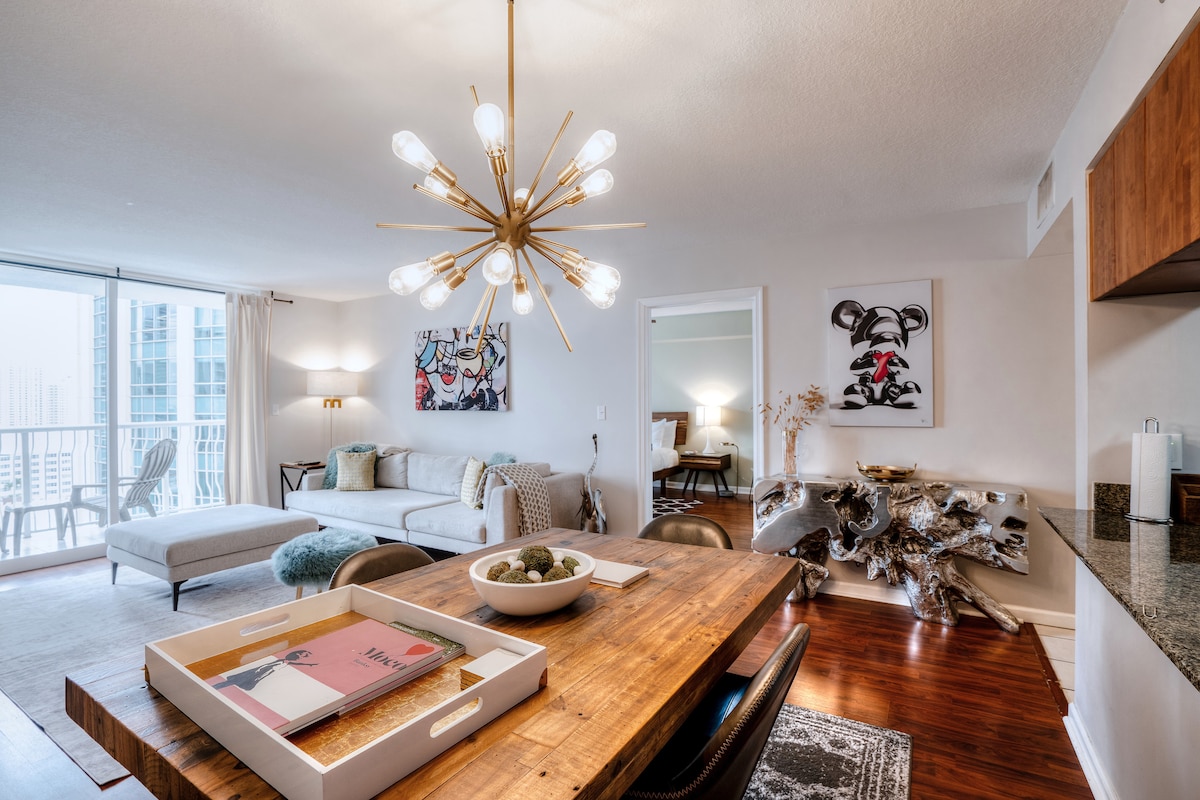 The "House of Art" Forecast: ☀️ 825 sq. ft + 175 sq. ft Private Terrace ☀️ 28th Floor View ☀️ 96/100 Walk Score Rating ("Walker's Paradise") ☀️ 91/100 Transit Score Rating ("Rider's Paradise") ☀️ 24/7 Check-in, Concierge & Security ☀️ Free Parking; On-site, Secure Garage ☀️ Extremely Safe Neighborhood ☁️ Washer & Dryer ☀️ Heated Swimming Pool, Jacuzzi & Gym ☀️ Premium High-Speed WIFI ☀️ 55" LCD TV ☀️ Fully Equipped Kitchen ☀️ 20 min. Ride to MIA Airport ☀️ 15 min. Ride to South Beach