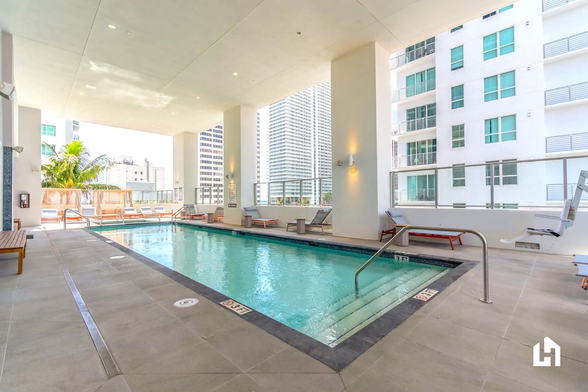 The Retreat in Miami! 🌴 This stylish apartment is just minutes from Freedom Tower and Kaseya Center 🏀 (home of the Miami Heat), offering stunning city views 🌆 and luxurious comfort. With easy access to Brickell, Wynwood 🎨, and the cruise ports 🚢, excitement is at your fingertips. Explore Bayside 🏝️, Frost Science Museum 🔬, and the Arsht Center 🎭. Unwind in a modern space designed for relaxation, featuring a rooftop pool and fitness center 💪—your perfect base for unique Miami experiences