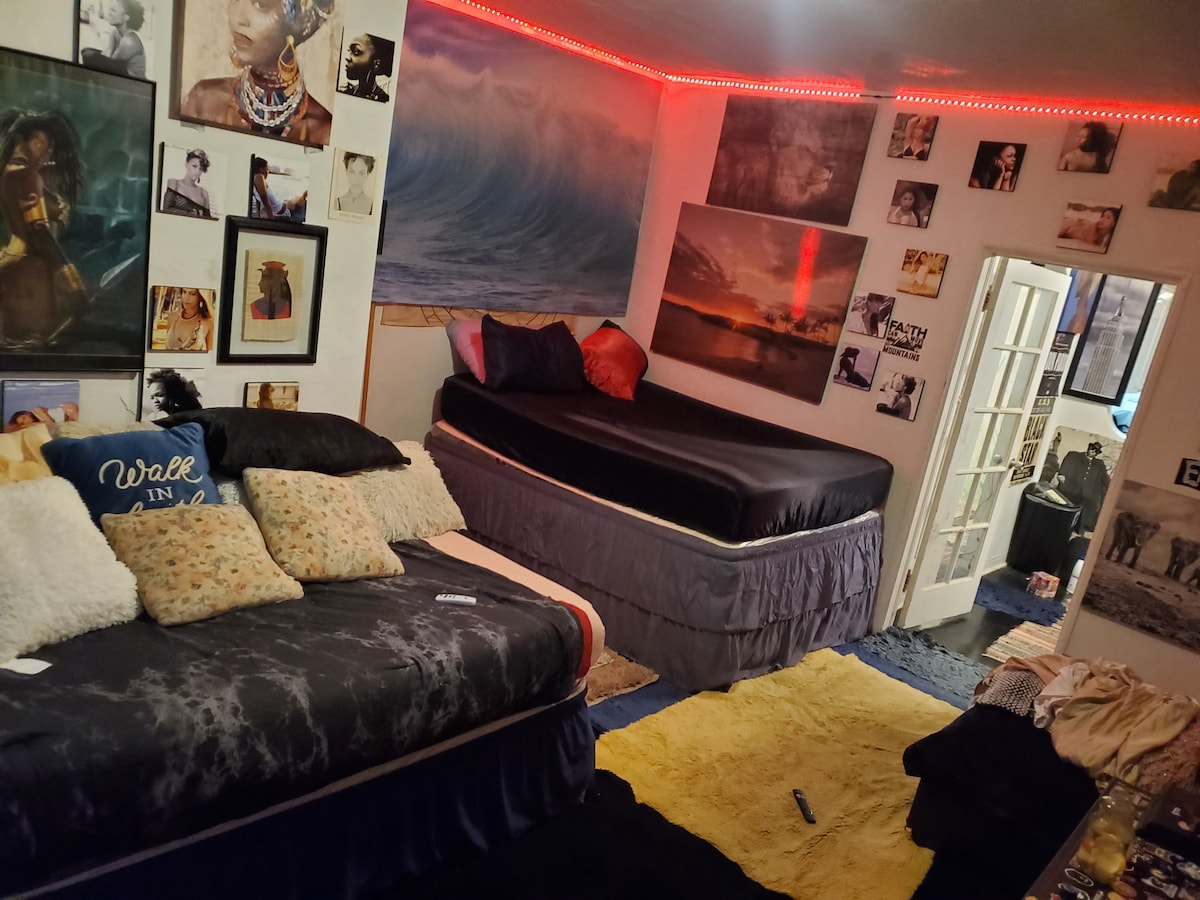 Welcome to my home! Your home away from home! This home is a duplex style home. Your own peivate side of the duplex, has two bedrooms, beds are trundle-style with a kitchenette and a bathroom. Provided an electric double burner, air fryer and microwave. You have a private covered patio and one designated parking spot. Your side is completely private. . Centrally located, 5 mins from MIA International. Walking distance from Freedom Park.