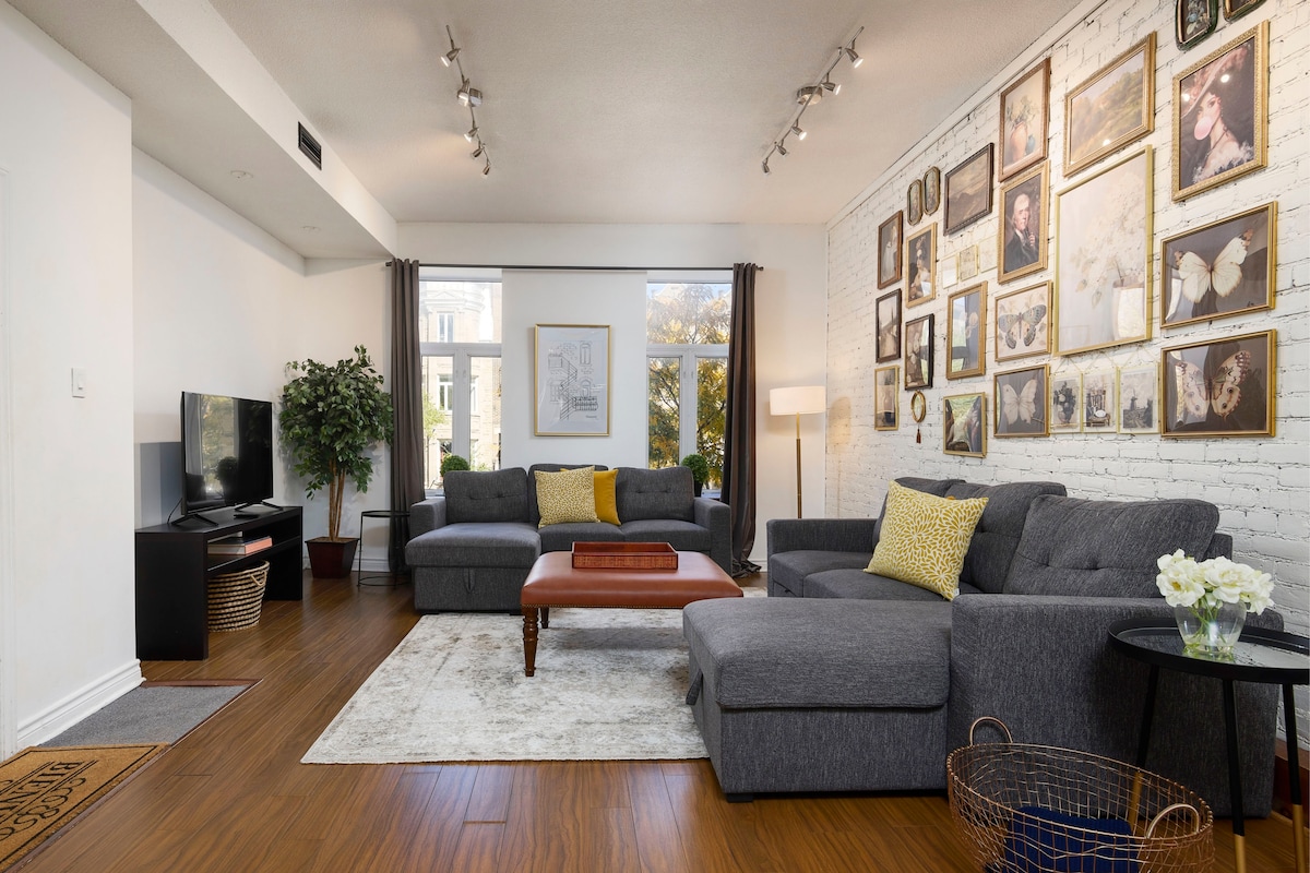 Experience Montreal from our specious 1,800 sq. ft. urban loft in the heart of the vibrant Plateau. With authentic white brick walls and high ceilings, this chic retreat comfortably accommodates families and groups. Enjoy a fully equipped kitchen, dedicated workspace, and a perfect walk score of 100. A rare find offering incredible space and style in Montreal's coolest neighborhood.