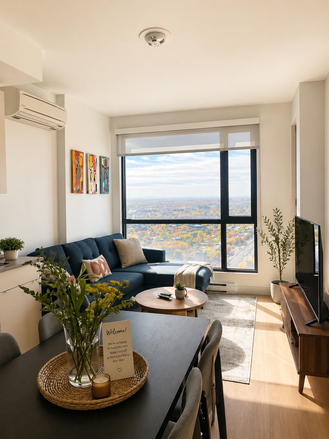 Enjoy a cozy and modern stay in this well‑designed 2 bedrooms apartment located in Downtown Montreal. Perfect for small families, couples, or groups of friends, this unit accommodates up to 5–6 guests with two beds in the bedroom and a sofa bed in the living area. A private balcony adds extra comfort, offering a quiet spot to relax after exploring the city.
