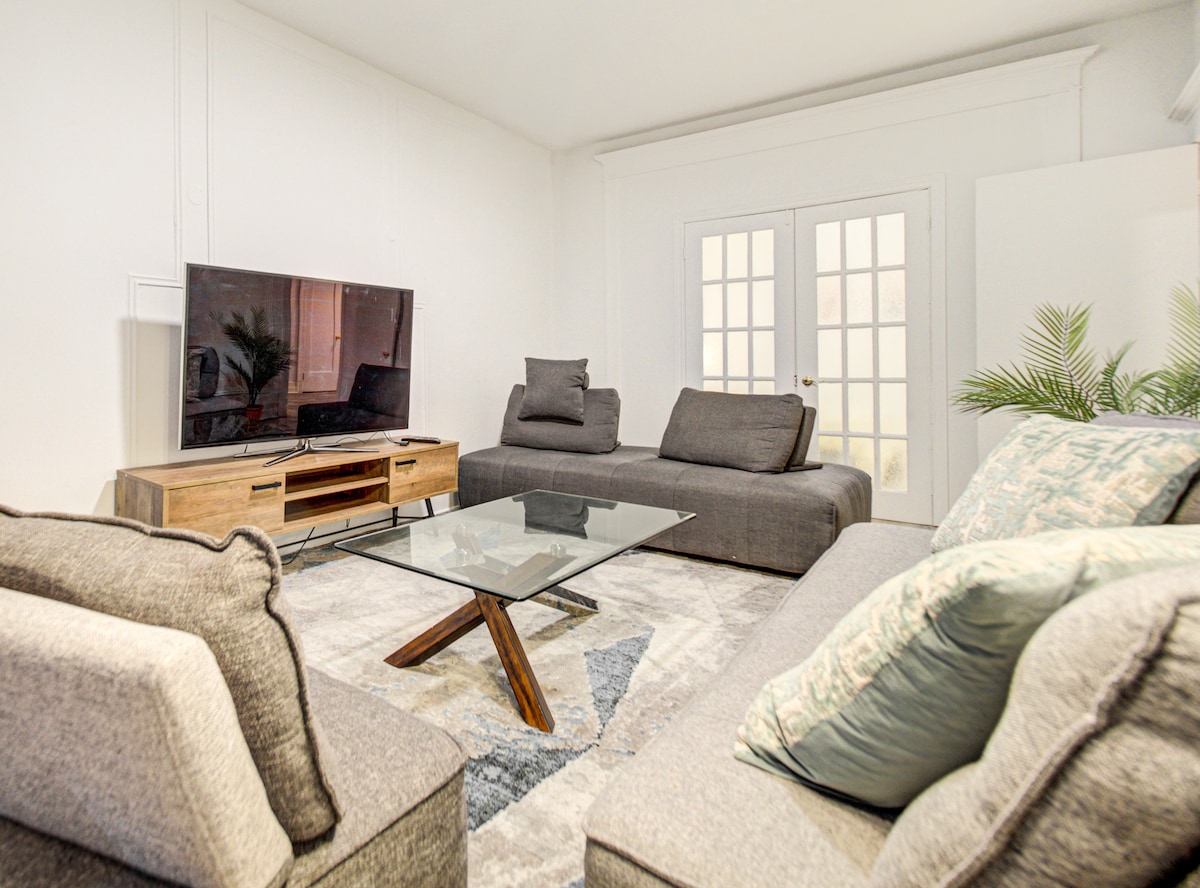 Experience refined urban comfort in the heart of Montréal’s Golden Square Mile, one of the city’s most prestigious and walkable neighborhoods. This modern 1-bedroom suite comfortably accommodates up to 6 guests with a queen bed and two sofa beds, perfect for couples, families, or business travelers seeking style and convenience.