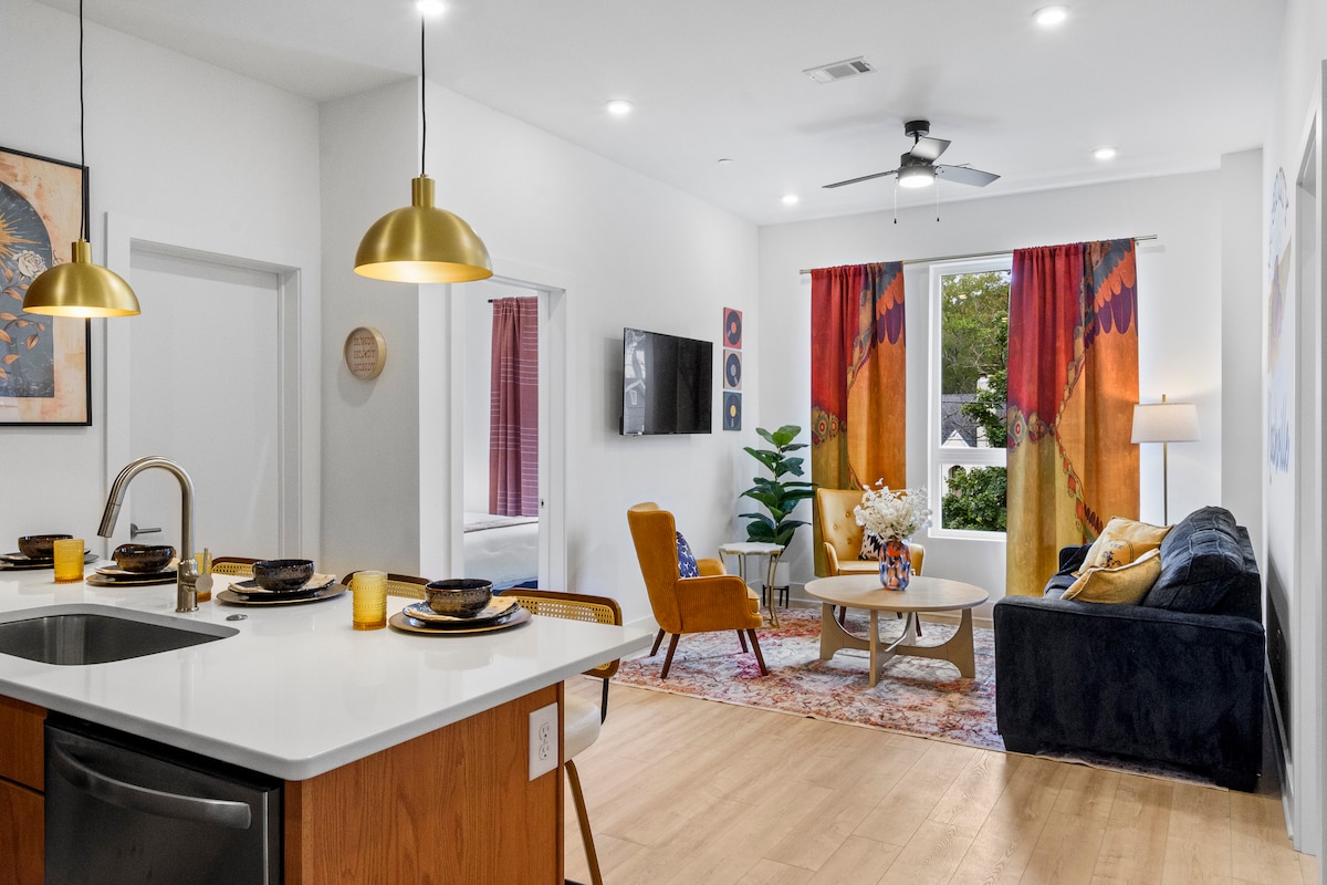 Stay in a uniquely designed, light-filled condo in the heart of The Nations—one of Nashville’s most walkable neighborhoods. Walk to 20+ restaurants & bars and 5 breweries, then relax in an airy open-ceiling living space or on your private rooftop deck. Enjoy free parking, free coffee, fast WiFi, a fully stocked kitchen, and thoughtful amenities throughout. Just 9–12 minutes to Broadway, downtown venues, stadiums, and 15 minutes to the airport—perfect for work or play!