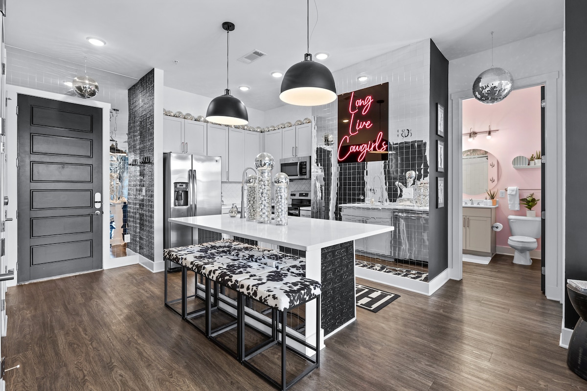 Welcome to Boots On Broadway, your gateway to the heart of Nashville! Located just minutes from the famous Broadway strip, this stylish industrial unit is designed to capture the city's lively Honky-Tonk spirit. Whether you're here for a romantic getaway or a productive work trip, you'll find the perfect blend of comfort and excitement. With Broadway's vibrant music scene right at your doorstep, prepare for an unforgettable stay where Nashville’s energy is part of the experience!