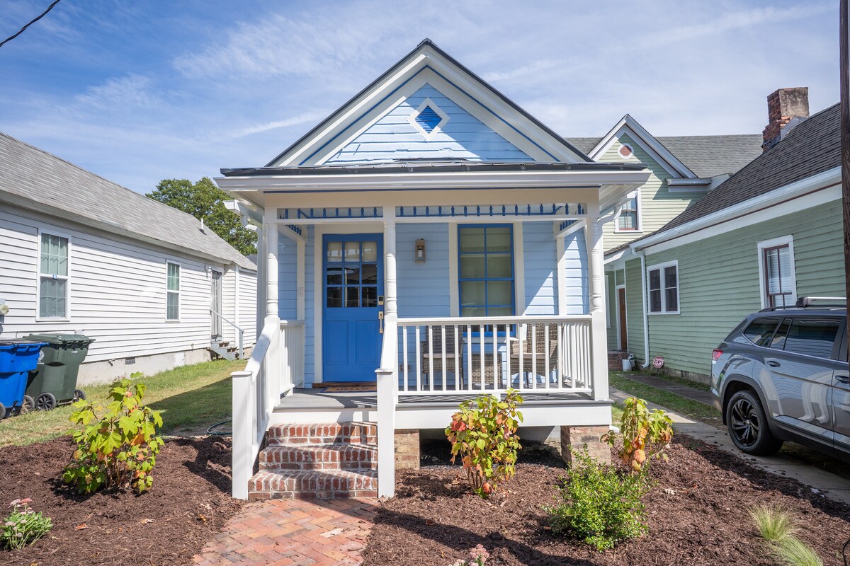 The perfect spot to come "home" to after exploring Raleigh. Vaulted ceiling in the living room, fully stocked kitchen, two-person table for meals or work, brand new organic comfy queen mattress, and laundry facilities. Enjoy coffee or a glass of wine on the front porch. Close to downtown restaurants, bars, coffee shops, breweries, entertainment venues, museums, and shops! Level two charging station for EV cars!