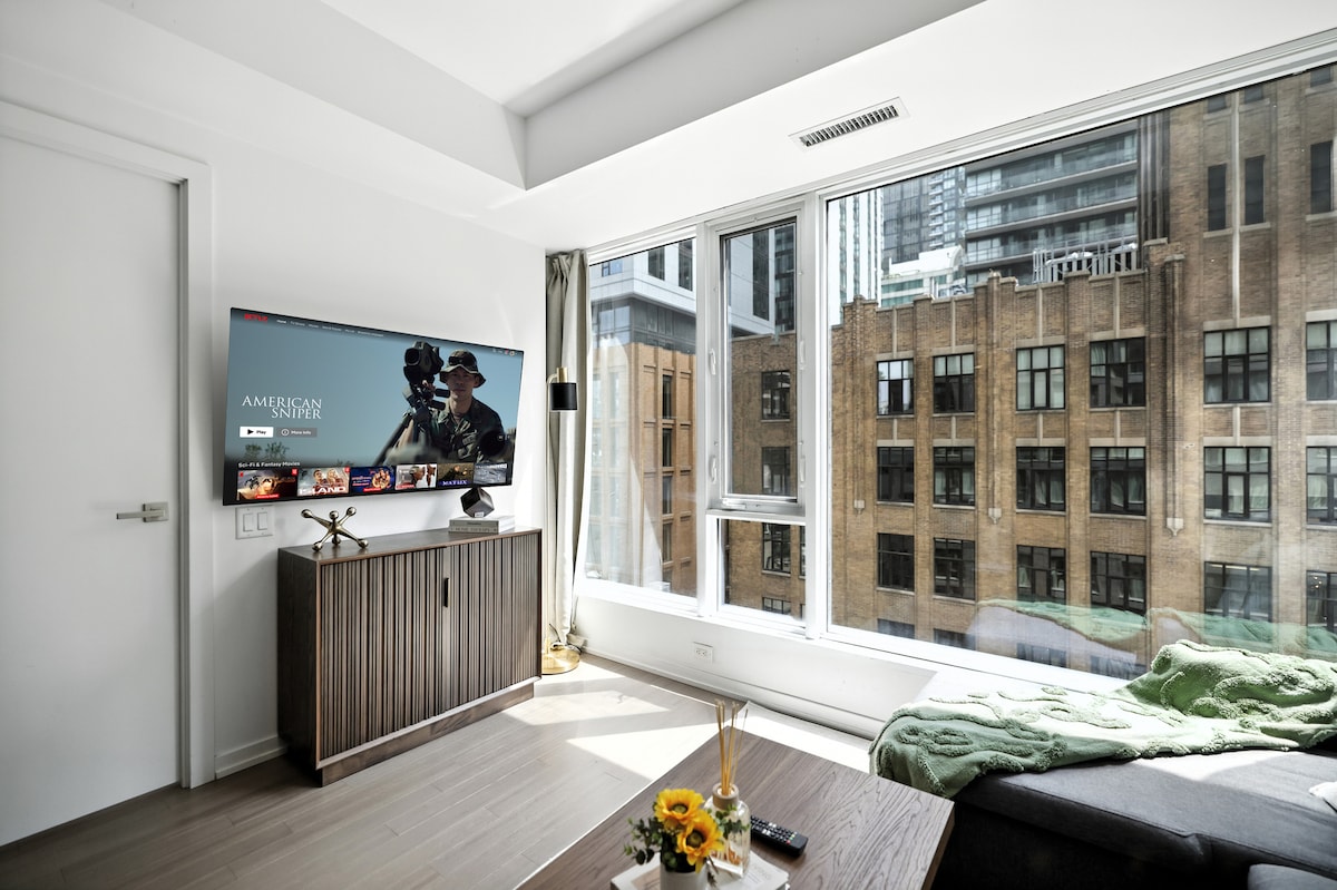 Modern 1BR condo on the 30th+ floor in the heart of Downtown Toronto, steps from CN Tower, Rogers Centre, Scotiabank Arena, Union Station, and the waterfront. Features a cozy bedroom, full kitchen, Smart TV, fast Wi-Fi, in-suite laundry, and self-check-in. Ideal for business or vacation – everything you need is right here. While this unit is new, I am an experienced superhost with hundreds of 5-star reviews. This unit will have the same level of quality.