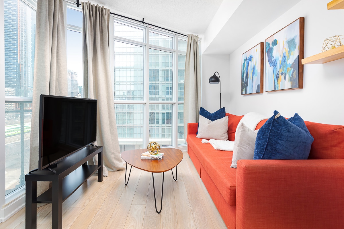 This stylish condo offers the perfect escape in Toronto’s Entertainment District. Walk to world-renowned dining, nightlife, and cultural spots like the AGO and Roy Thomson Hall. With a modern, professionally decorated interior, it’s a private and comfortable base for your Toronto adventure. The condo is thoroughly cleaned between each guest to ensure your space is fresh and welcoming. It’s the ideal spot for a seamless stay in the heart of the city.