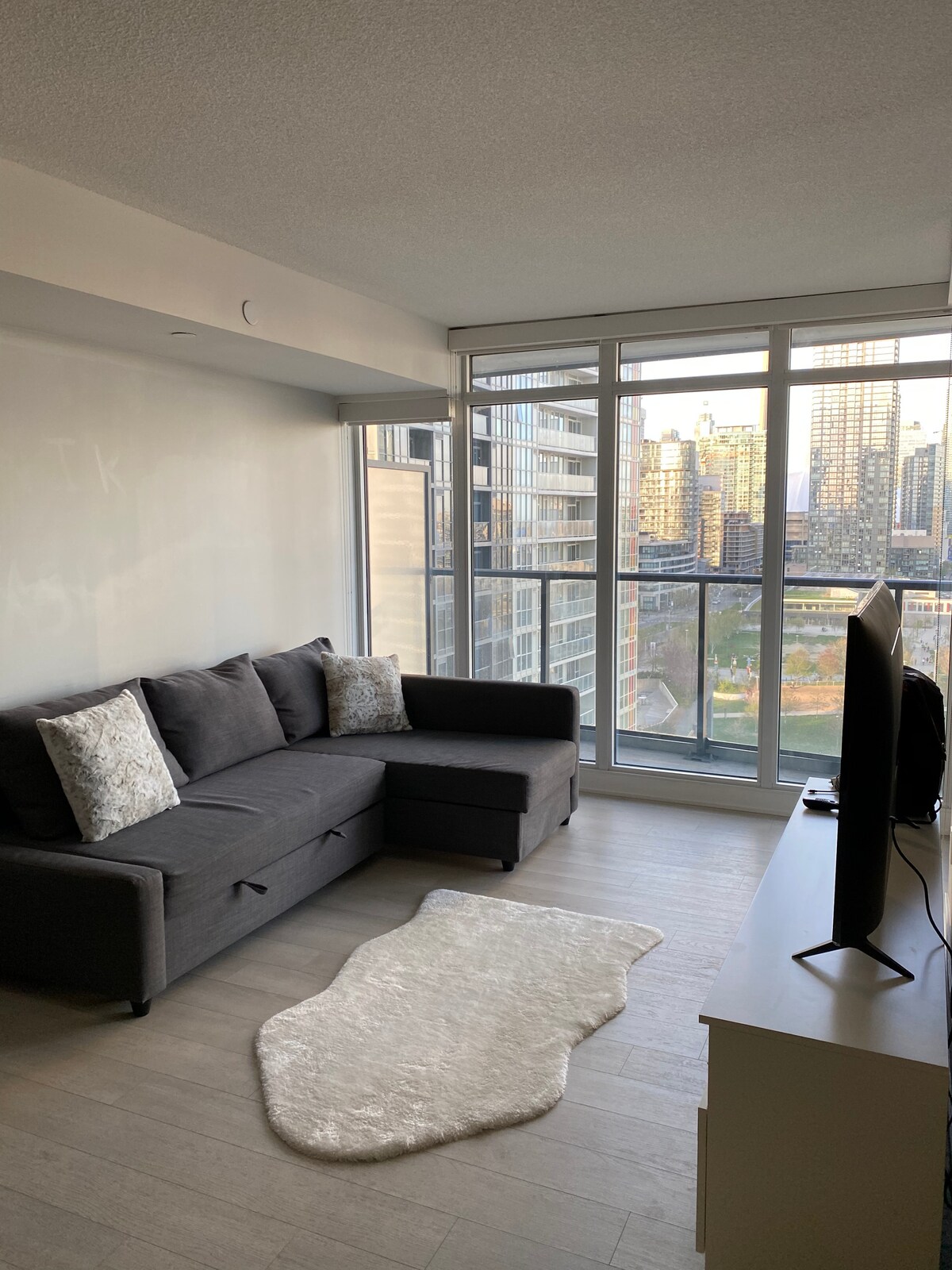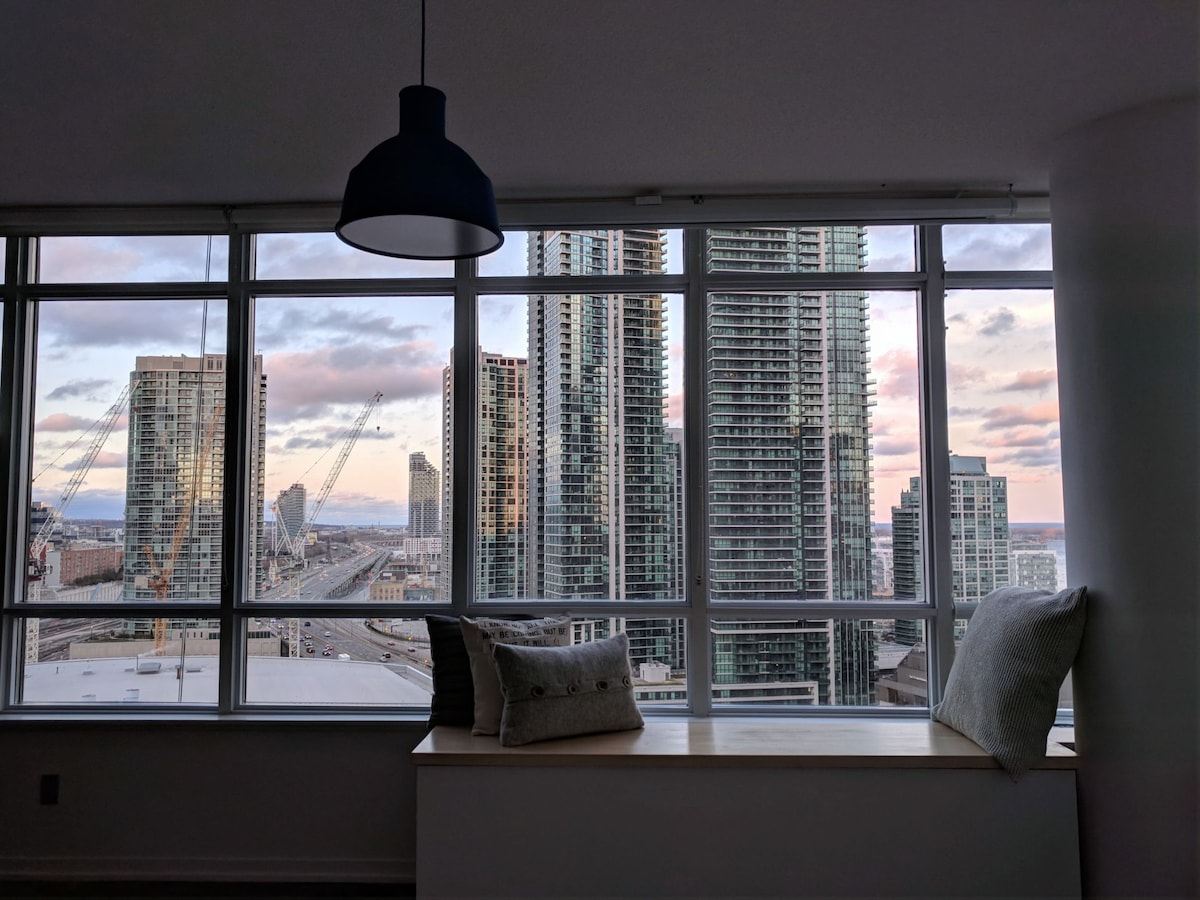 Ideal for one or two guests - solo guests, couples, friends or those in town for work. No parties or additional guests permitted. Enjoy views from the large balcony with great views of the CN Tower, Lake Ontario and Toronto skyline! Located next to Union Station, making it easy for guests to get to and from. Close to all forms of transit. Short walk to CN Tower, The Harbourfront, sports/concert venues, the Entertainment District, restaurants and shopping. Please read the rules section in full!
