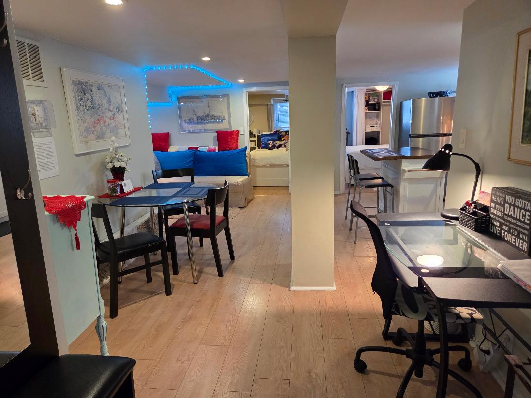 Explore Toronto from this modern self-contained suite with fast & easy access to downtown. Tucked on a quiet, beautiful tree-lined street in ultra-trendy Bloorcourt Village, you’ll be steps away from the subway, parks, markets, cafés, restaurants, bars, and shops. Enjoy living like a local with the comfort of a hotel. This bright & spacious basement suite & den features a fully equipped kitchen, 3-piece bath, queen & twin bedrooms, 40” TV, and fast, free Wi-Fi, perfect for short or longer stays.