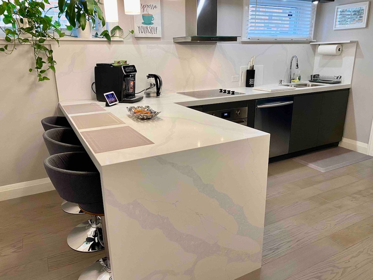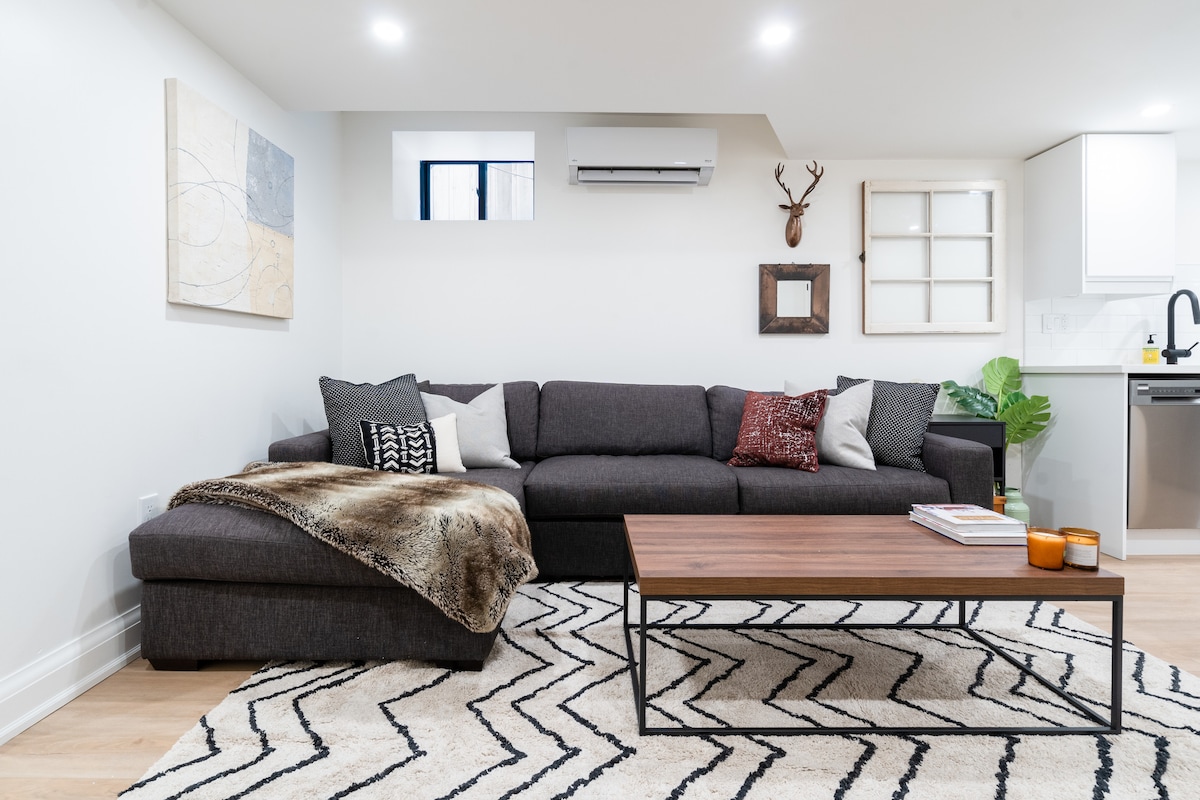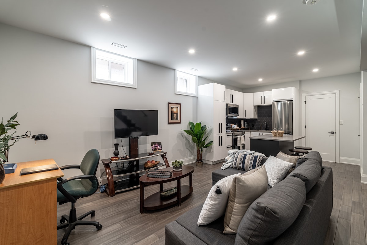 明亮的独立地下室套房|地铁附近的1卧室