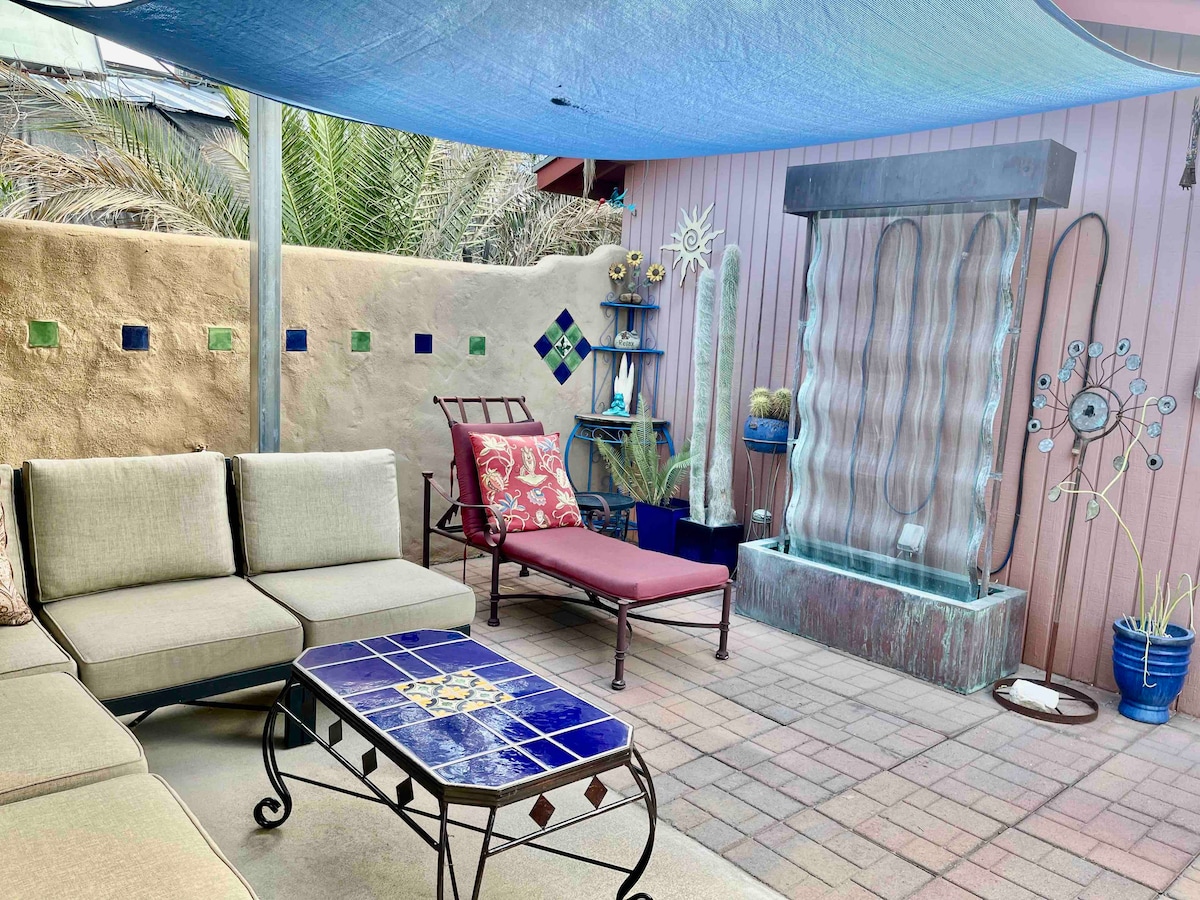 Welcome to a one-of-a-kind guesthouse created by a Swiss-born professional photographer and freelance artist. This attractive open studio space is part of my "Gesamtkunstwerk" (entire body of work), still in flux. Featuring murals and curated pieces from across a lifelong creative journey. Thoughtfully designed with passion and purpose, the space offers both inspiration and comfort in the heart of Tucson.