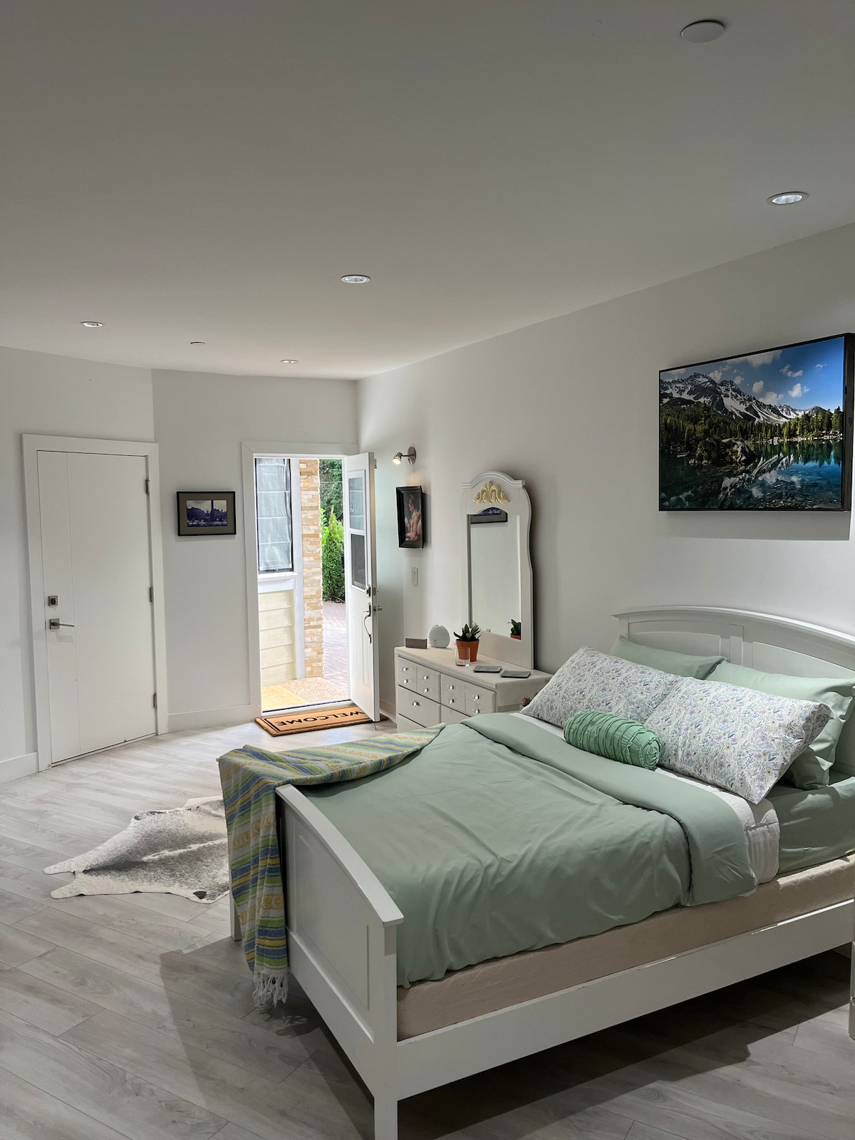 Modern private suite in a newly built West Coast home, steps from Lynn Headwaters trails and nature. Relax in your own outdoor social area perfect for morning coffee, evening wine, or relaxing after hiking or biking. Walk to the beloved End of the Line Cafe/Bakery—a charming local gem. Stylish, quiet, and close to transit, amenities and easy access to Downtown Vancouver—ideal for nature lovers, couples, or solo adventurers. Fast Wi-Fi, private entrance, and cozy comfort in a forested setting.
