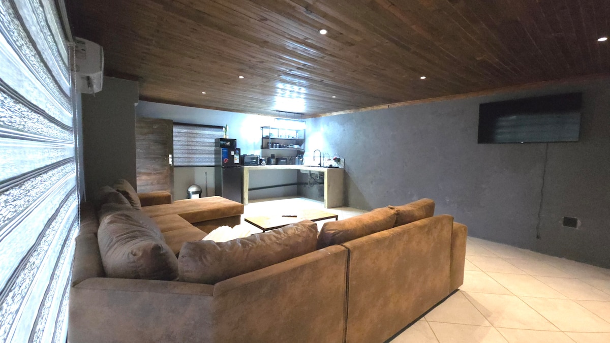 Escape to Ons Plek, a modern and spacious apartment surrounded by the beauty of nature. This comfortable self-catering stay offers everything you need to relax and feel at home. Enjoy a fully equipped kitchen, a cozy living space, and a Smart TV for your favorite shows after a peaceful day outdoors. Wake up to fresh air, open skies and quiet surroundings while still enjoying modern comfort and convenience. Whether you're visiting for work, a weekend getaway, or simply to unwind.