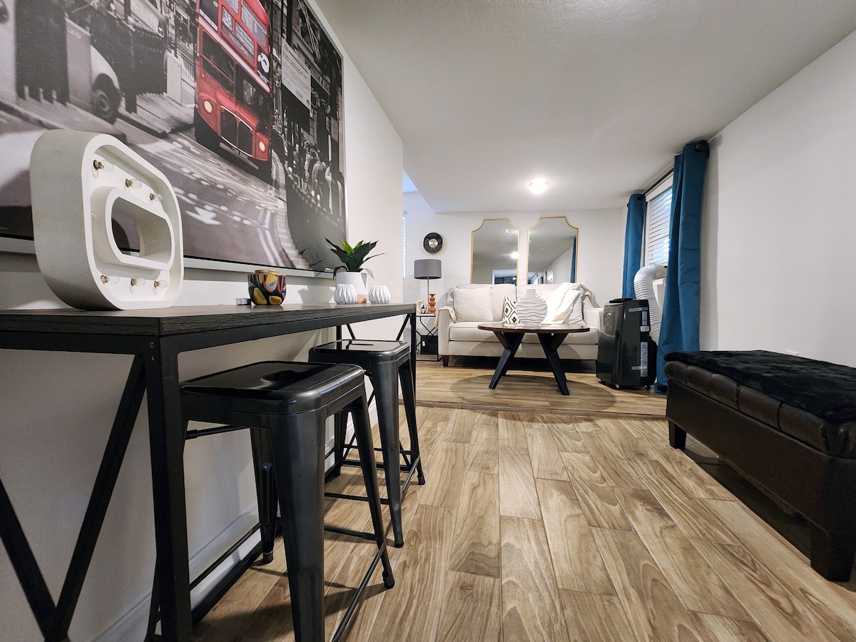 Conveniently located between the foodie-friendly Milk District and Downtown Orlando, this impeccably thought-out space features a spacious loft style open floor plan perfect for a couple or small group. The floor to ceiling windows allow natural light to fill the space while providing complete privacy during your stay. Upscale Winter Park restaurants and the vibrant Thornton Park art scene are only a short drive away. Universal is only 20 minutes away, Disney is 35 minutes, MCO 20 minutes.