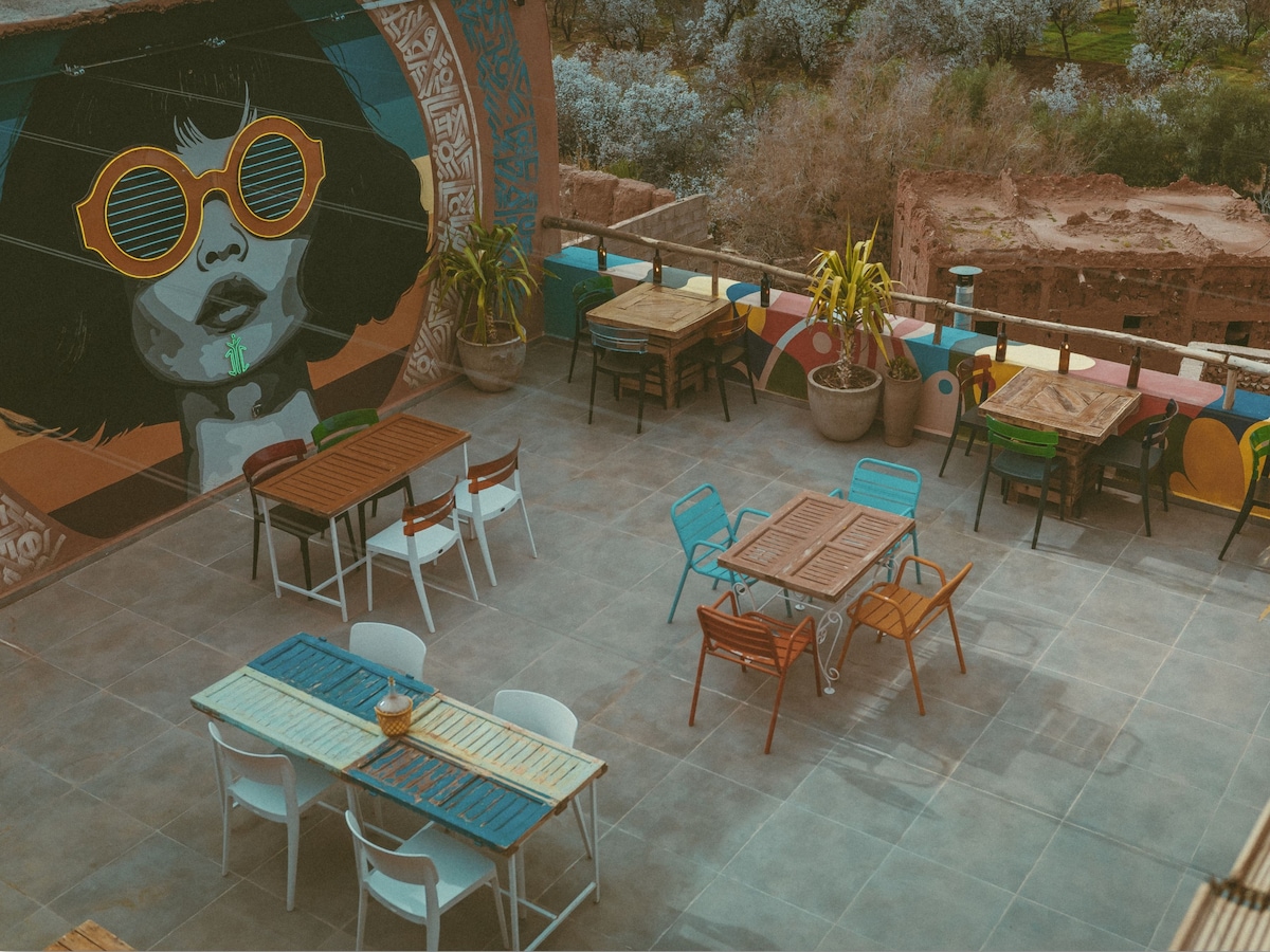 Escape to our luxurious ecolodge nestled in the heart of Roses Valley, Dades Gorge, where a stay with a local family promises an immersive cultural experience amidst our 600 square meter aromatic organic food garden, Janane. unique local cuisine crafted from garden-fresh ingredients, while surrounded by artistic touches and unparalleled hospitality. the tranquility of the valley, sustainability, and authentic Moroccan charm.