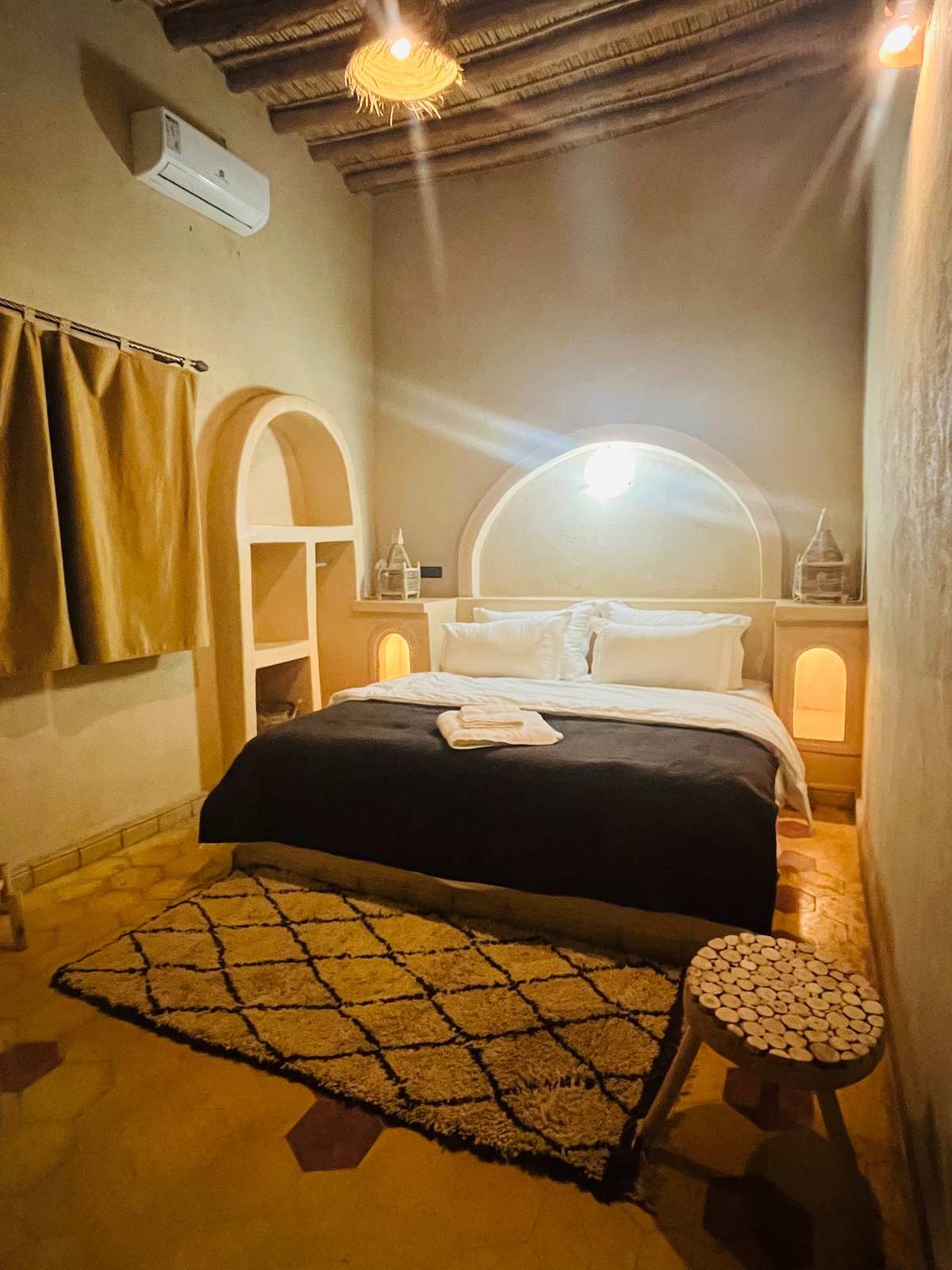 After the Airbnb success of The Dune House, we have added a separate studio style room ! Beautifully rustic, with views from every window and a private balcony. There is nowhere like it. For a completely unique stay and authentic desert hospitality, we are proud to welcome you to our favourite room in the moroccan desert. With access to the main Dune House terrace, and pool of our hotel 200m away, this room offers a separate entrance to the house