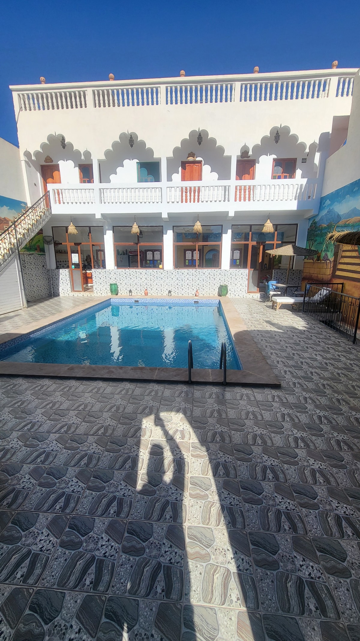 Let me tell you a little bit about this magical house. It is located in the center of Mhamid a village where you will sure feel the power and beauty of the desert. Your stay here will be unique, a place full of nomadic energy. From authetic Moroccan food to desert journeys. Here you will have all you need hot showers, cozy rooms, WiFi, washing machine and more. If you like we can organize a unforgetable desert journey. Nights full of shinning bright stars, camp fires and great Moroccan dishes.