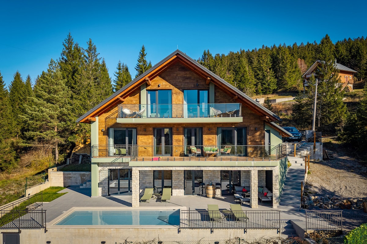 Discover your private sanctuary at our charming wooden house, nestled on a sunny hillside. Here, sweeping views of the valley and lush forests unfold before you, creating a truly beautiful natural setting. The heated saltwater swimming pool (opened 1.5.-30.9.)offers a luxurious spot to relax , ensuring complete peace and serenity away from the world. It's more than just a getaway; it's your personal escape from the everyday.