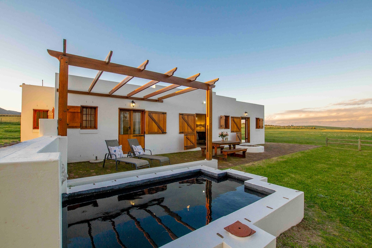 Enjoy the sights and sounds of nature when you stay in this unique eco home, designed with biophilic principles. We’ve chosen natural building materials like hemp walls, 100 year old recycled Oregon wood and handmade eco-paint to increase our connectivity to nature & tread lighter on our planet. Double glazed glass helps regulate. Overlooking our farm dam, with trees to rest under and the majestic Winterhoek mountains as a picturesque backdrop - our cottage is the perfect weekend getaway.