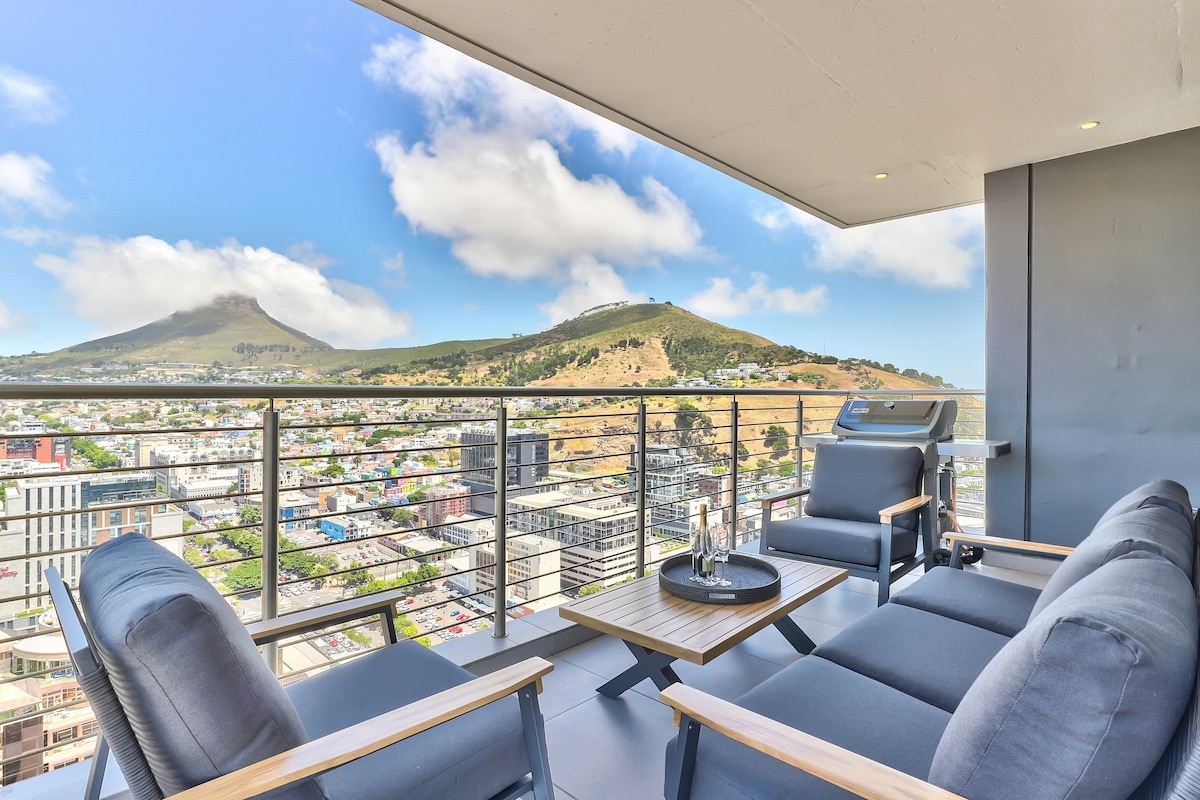 The greatest views of Table Mountain, Cape Town & Atlantic Ocean awaits YOU! Perched on the 33th Floor this sensationally decorated Penthouse is complimented by fine furniture, fittings and contemporary art. If that isn't enough, enjoy alfresco barbeques, sunrise and sundowners on your private balcony taking in the glorious views. Sensational 27th floor pool deck and outdoor, cross-fit style training gym & small bar & coffee shop. Enjoy! *Zero power cuts in this building.