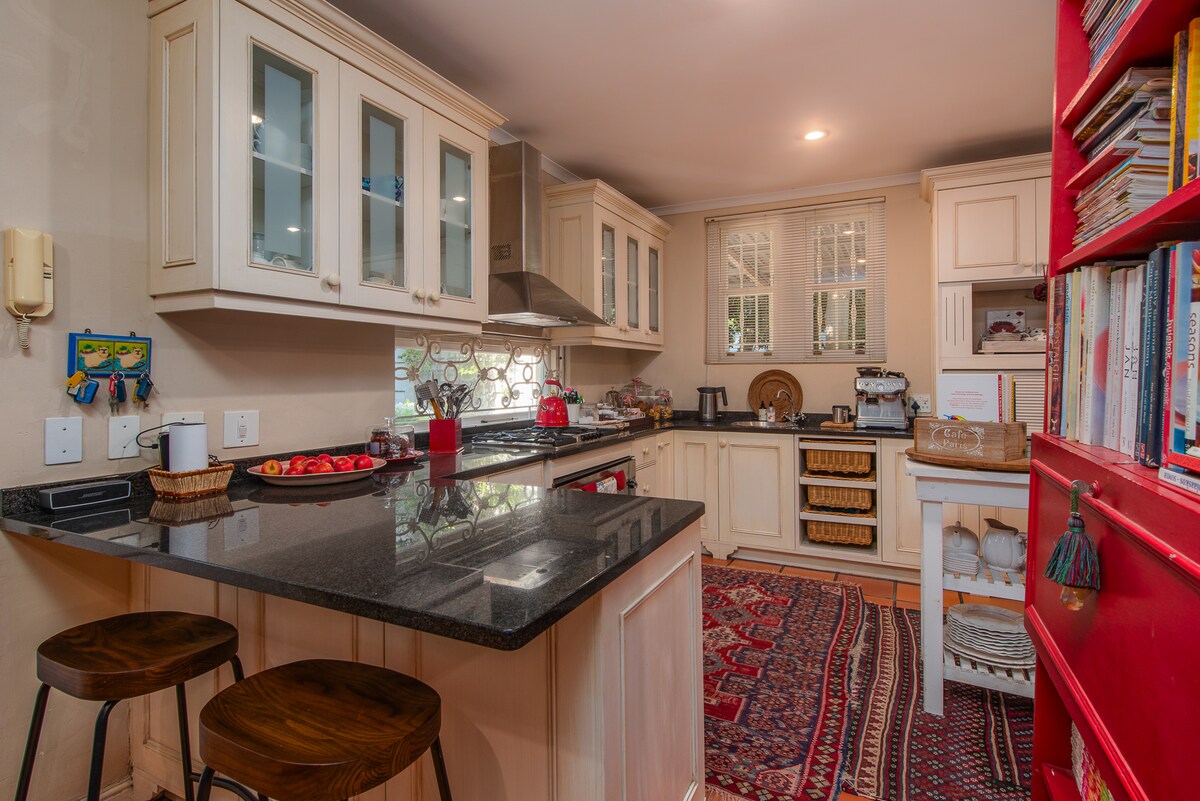 A spacious guest suite for two, in a beautifully restored 19th-century cottage attached to a private home, in the heart of Franschhoek - the village’s best cafes, restaurants, boutiques and bars are all on your doorstep. If you enjoy immersing yourself in local culture and the hum of village life, this one’s for you! Ps: We do have an inverter to keep the lights and WiFI on for you during power outages!