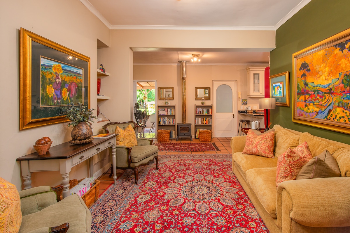 Enjoy a beautiful artistic home full of character and carefully curated interiors. Don’t worry about loadshedding with the solar and inverter system. All rooms have en-suite bathrooms. The main bedroom has a super king bed, the second room has a queen bed and the third room has a 3/4 bed as well as a bunk bed (2 singles) We really love catering to easy-going guests.