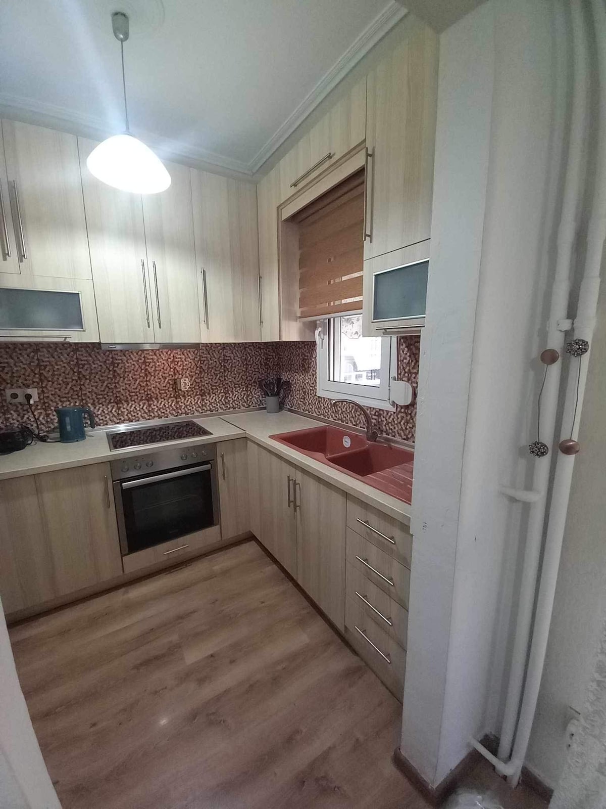 Α peaceful condo on the ground floor of a neoclassical house built in 1927 with a small garden and a private parking space. The apartment includes a hallway, separate bedroom, open space kitchen & living room, bathroom with shower and a washing room with a washing machine and a dryer, fridge, electric stove with oven, kettle, coffee machine, toaster, A/C, TV, free wi-fi, cooking utensils and cutlery, bedlinen, blankets, pillows, towels, toiletries, hair dryer, iron & iron board.