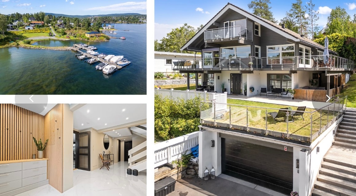 Only 50 minutes from Oslo, this spacious house is located in a wonderful, quiet, sunny, seaside location. Most rooms offer panoramic views of the fjord. The house has a modern dark interior, a fully equipped open kitchen and a spacious living room that connects with sliding glass doors to a large veranda, facing west and overlooking the sea. Parking in the front yard. Charger for electric car is available for a fee.