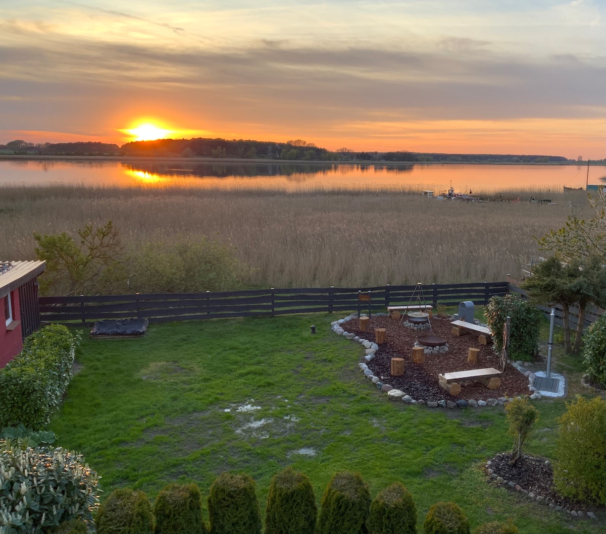 Du wohnst ganz allein mit deinen Lieben in dem geräumigen Haus auf dem großen Grundstück direkt am Peene-Strom. Das Haus ist hochwertig und modern eingerichtet. Die Zimmer sind gemütlich und individuell. Das Herzstück ist der große Wintergarten mit Blick auf das Wasser. Du findest hier einen ruhigen und idyllischen Ort inmitten der Natur am Wasser.Für Abwechslung sorgt ein Riesentrampolin, Gokarts, Tischtennis, Fußballkicker, Dartscheibe oder die Kajaks, um die Gegend vom Wasser aus zu erkunden.