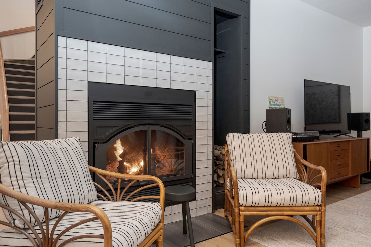 MaMeO Beach Getaway on Pigeon Lake Escape to our modern 4-bedroom lakeside retreat, just a 1-block walk from the white sands of MaMeO Beach on Pigeon Lake. Perfect for up to 8 guests, this stylish getaway is ideal for families, girls weekends or groups. Enjoy a wood-burning fireplace, a fully equipped kitchen, a screened-in deck, and an evening firepit. It's the perfect spot for connection and creating lasting memories.