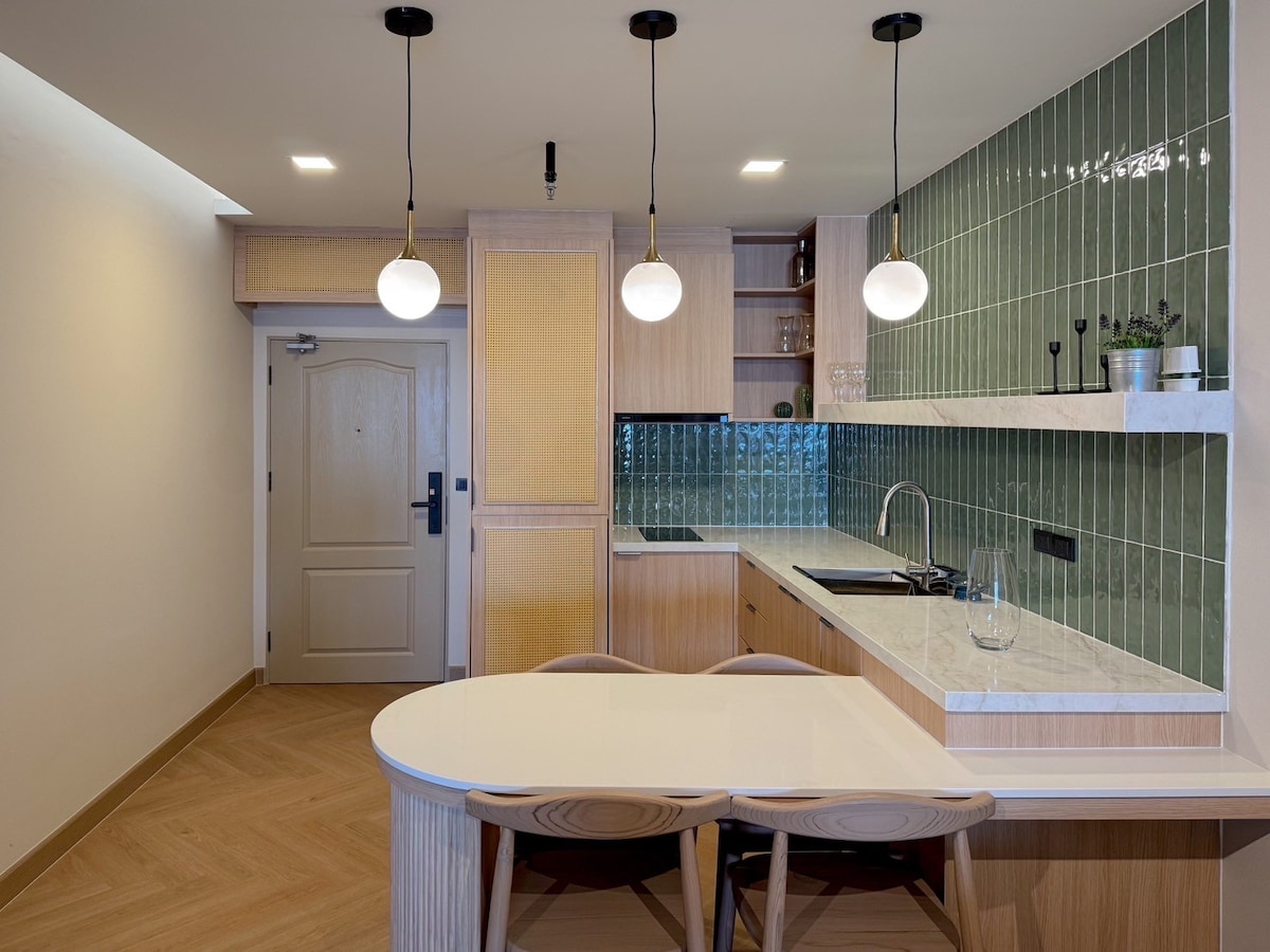 Unwind in our peaceful, thoughtfully designed townhouse. This artistic loft features a state-of-the-art kitchen, spacious bedrooms with large wardrobes, luxurious dual rain showers, PM2.5 ACs, and a 75" TV with video games. Surrounded by creative touches like art, poetry, and photography, it’s a haven of comfort with everything you need. Enjoy high-speed Wi-Fi, dual lighting, and optional transportation for a seamless stay.