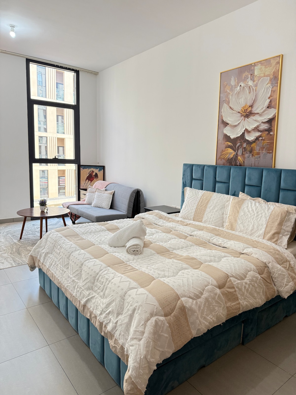 Don't Miss This! Studio Apartment with Side Sea Views on Ajman Corniche. Welcome to your beautiful studio apartment, a prime location in a beautiful community, known for its proximity to the beach ! Enjoy cafes, restaurants, bars, salons, and supermarkets. This stylish, spacious studio is designed for comfort and functionality, featuring Wi-Fi, a smart TV, and essential kitchen amenities. A perfect choice for travelers who appreciate both elegance and practical living.