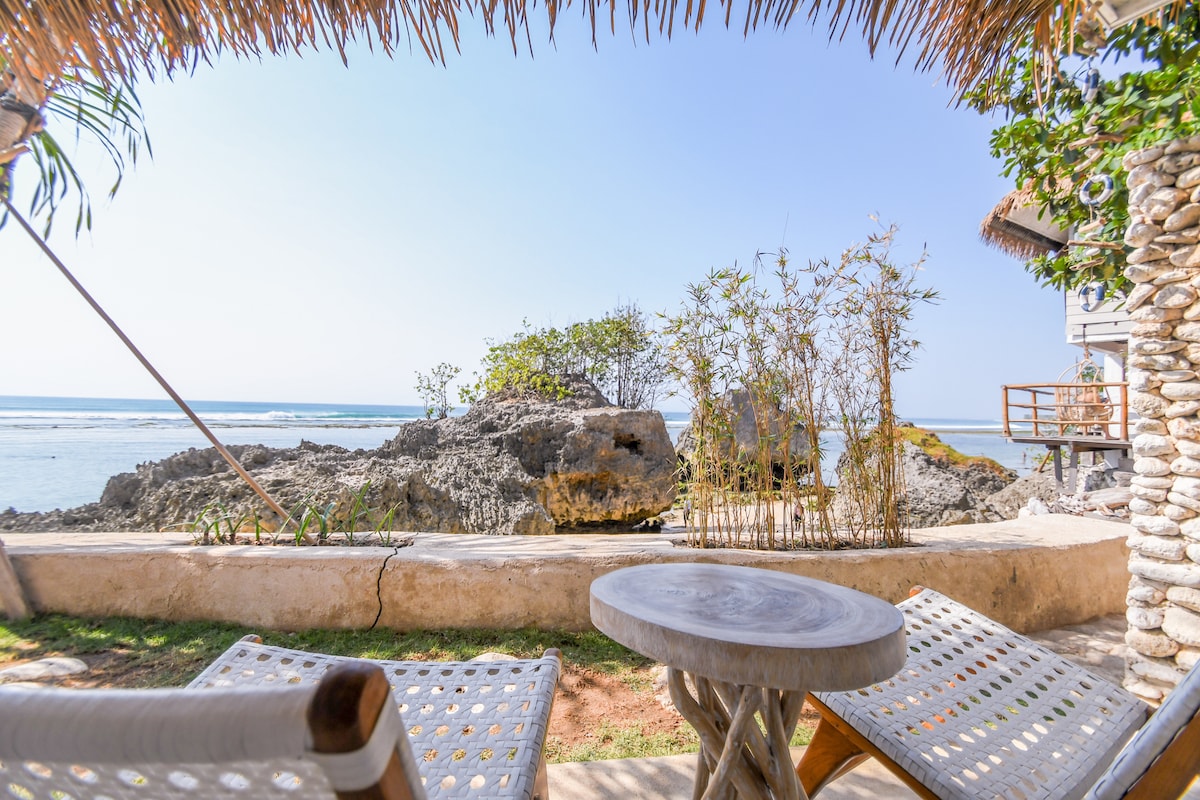 A secluded and romantic boutique villa on the cliff of Impossible Beach, with a breathtaking view of the Indian Ocean from your private balcony. This is the ideal place for your honeymoon getaway, where you can relax and enjoy the beauty of nature with your loved one in a unique and cozy treehouse room. Our honeymoon suite is furnished with a spacious balcony with a dining table and a sofa, and a luxurious bathtub where you can soak in the stunning sunset view over the ocean.