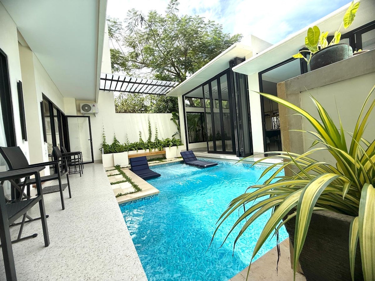 Relax in style at CHAO Villas, your modern 2-bedroom retreat in Ungasan, Bali. Enjoy full privacy with your own entrance, parking and private pool. Guests also have access to a SHARED recovery area featuring a sauna, ice bath, jacuzzi and large common pool. Perfectly located near Bali’s best beaches, restaurants, and golf courses. Fast Wi-Fi, daily cleaning, and tropical comfort included.