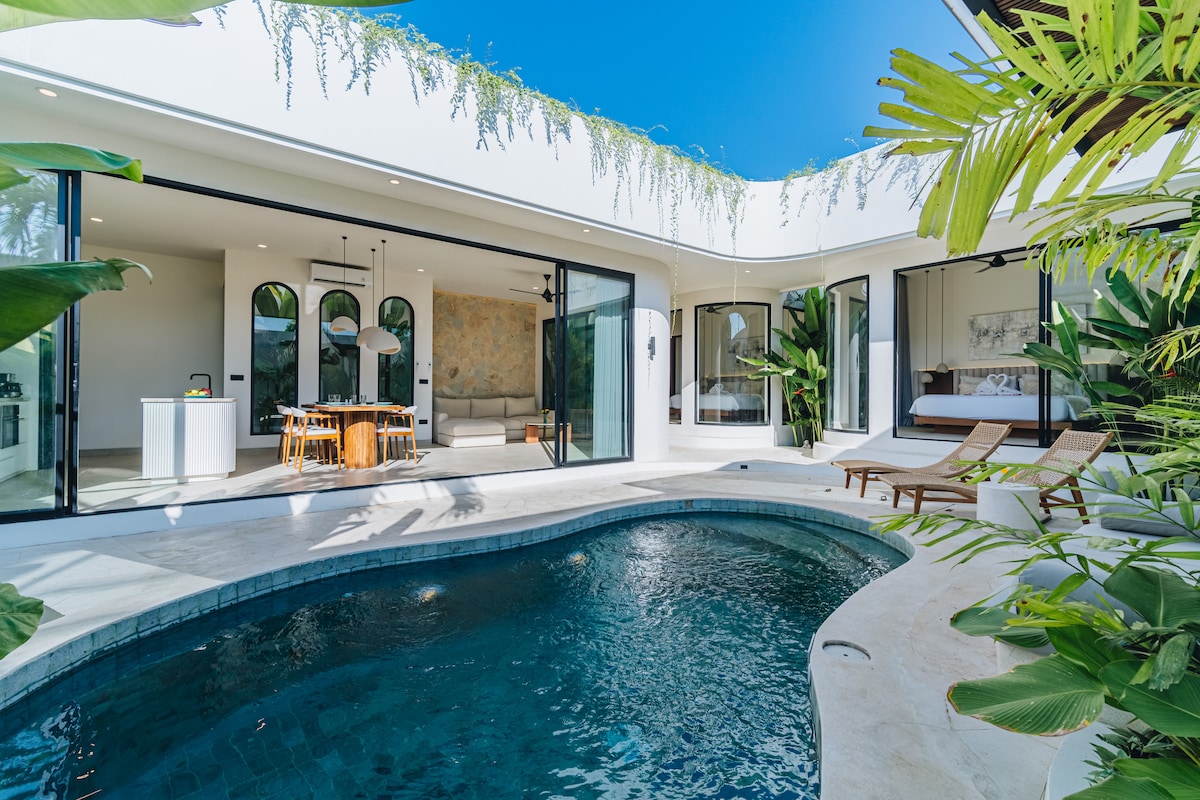 Escape to your private tropical sanctuary—designed with romance and relaxation in mind. Nestled in a serene part of Bali, this stylish one-bedroom villa blends Mediterranean-inspired curves with modern elegance, perfect for couples and honeymooners seeking a dreamy getaway. Whether you're waking up to soft sunlight through sheer curtains, dining al fresco under the stars, or enjoying a relaxing soak in your designer shower, every detail has been curated for comfort, style, and connection.