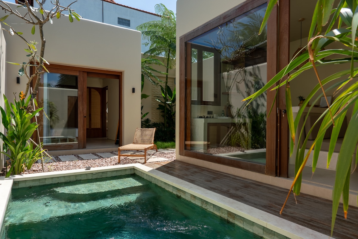 Welcome to Saltu Villas - Villa 3 Tucked away from main strip, this stylish 1-bedroom villa offers a perfect blend of contemporary design and tropical comfort. The villa boasts private pool, open plan living spaces, and stunning surrounds just minutes from Bali’s world famous beaches. Villa features: 🌴 Open plan living with AC/ seperate bedroom 💧 Private pool 📶 High speed WIFI, Smart TV Note - currently a construction site next door so will be some noise during the day.