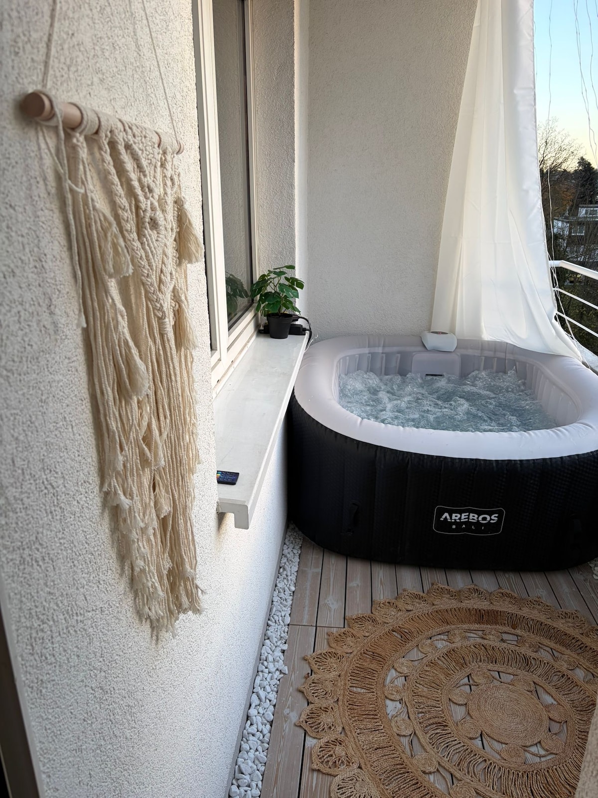 45qm Appartement für 2 Personen mit Duschbad/WC incl.Küche, Spülmaschine, 2 Platten-Induktionsherd, Kühlschrank und Bar mit Sitzplatz. Küche ist ausgestattet zum Essen und Kochen - Besteck, Gläser, Teller, Töpfe etc.. Begehbarer Kleiderschrank vorhanden. Gemütlicher Balkon mit Sitzplatz. Bitte berücksichtigen Sie, dass diese Unterkunft ein großes Doppelbett unter dem Dach hat, mit einer Stehhöhe von 160cm und über eine Holzstiege zu erreichen ist.