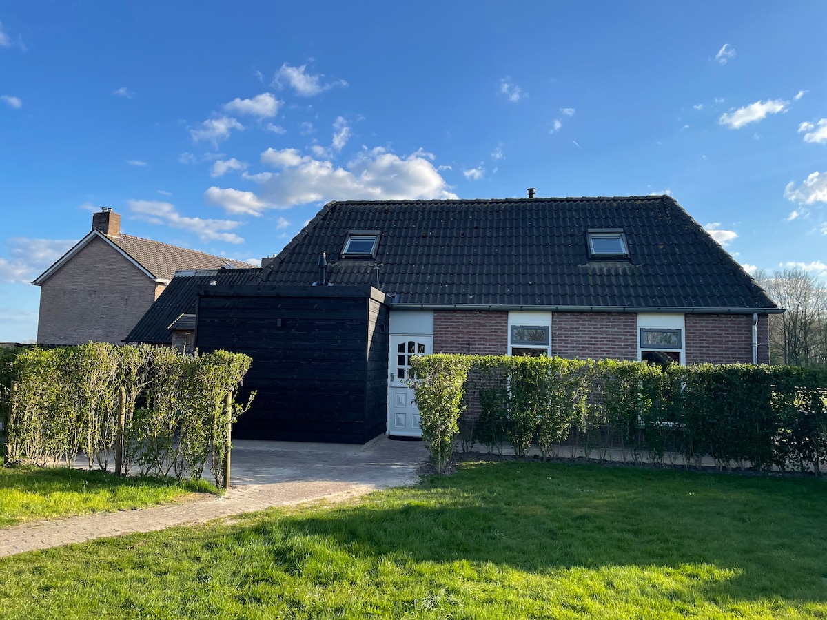 Vrijstaand, rustig gelegen compleet uitgerust guesthouse op zonnepanelen. Eigen toegang, terras en tuin. Ontbijt voor 1 nacht incl. Aan de achterkant zit u in het buitengebied en loopt u zo door de landerijen. Viswater, fiets- en wandelroutes. Fietsen beschikbaar. Eigen fietsen kunnen op het terrein staan. Vrij parkeren op straat. 30 Min rijden naar Groningen, Assen, Emmen. Het winkelcentrum van Stadskanaal ligt 4.6 km verderop, zie afbeelding extra foto's, de Spar 3 km. verderop.